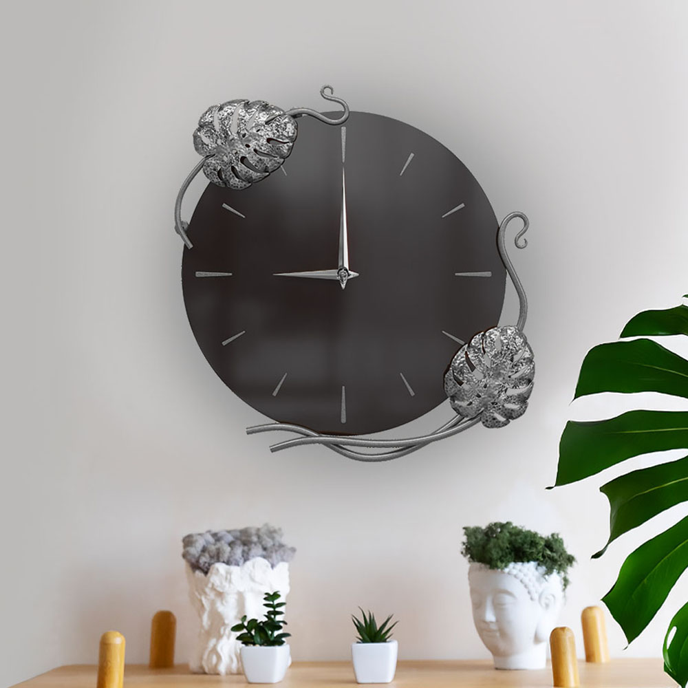 Часы настенные Monstera Deliciosa (Монстера) Колор Терпкий коричневый Сильвер