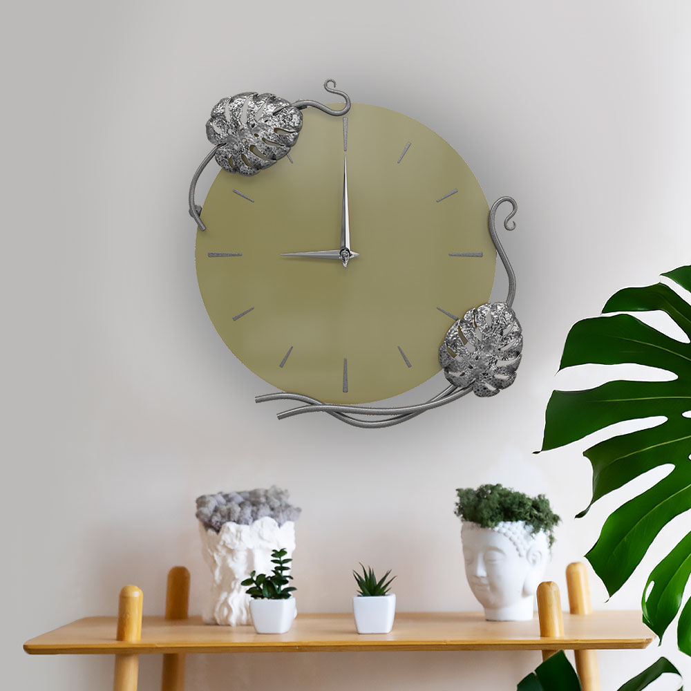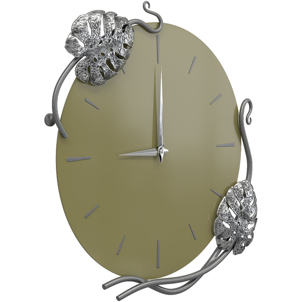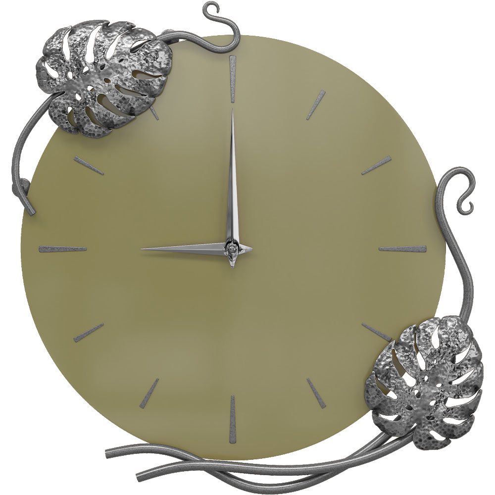 Часы настенные Monstera Deliciosa (Монстера) Колор Зеленая олива Сильвер