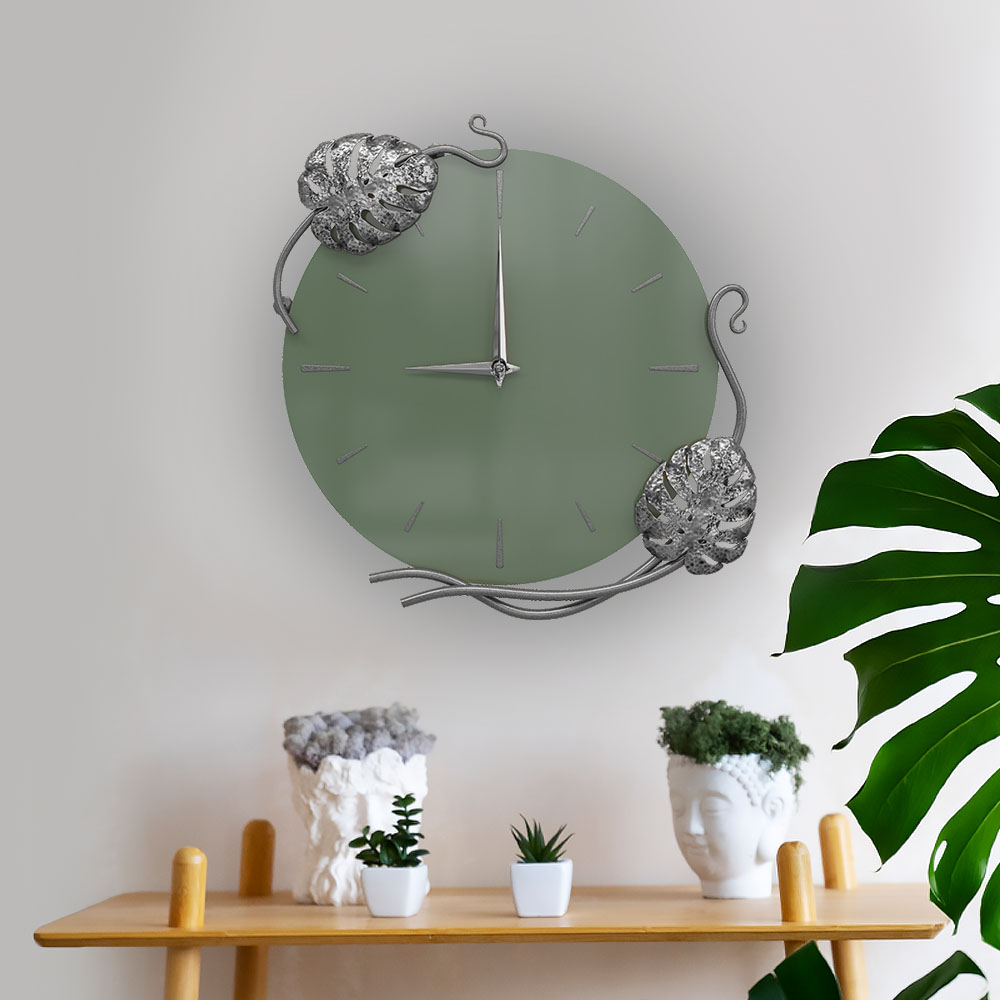 Часы настенные Monstera Deliciosa (Монстера) Колор Зеленый нефрит Сильвер