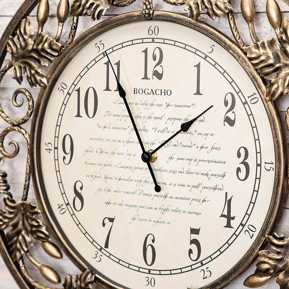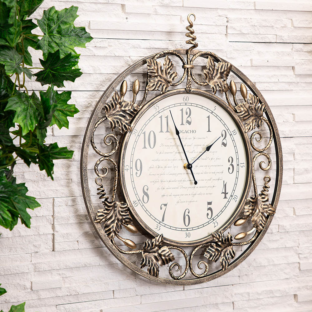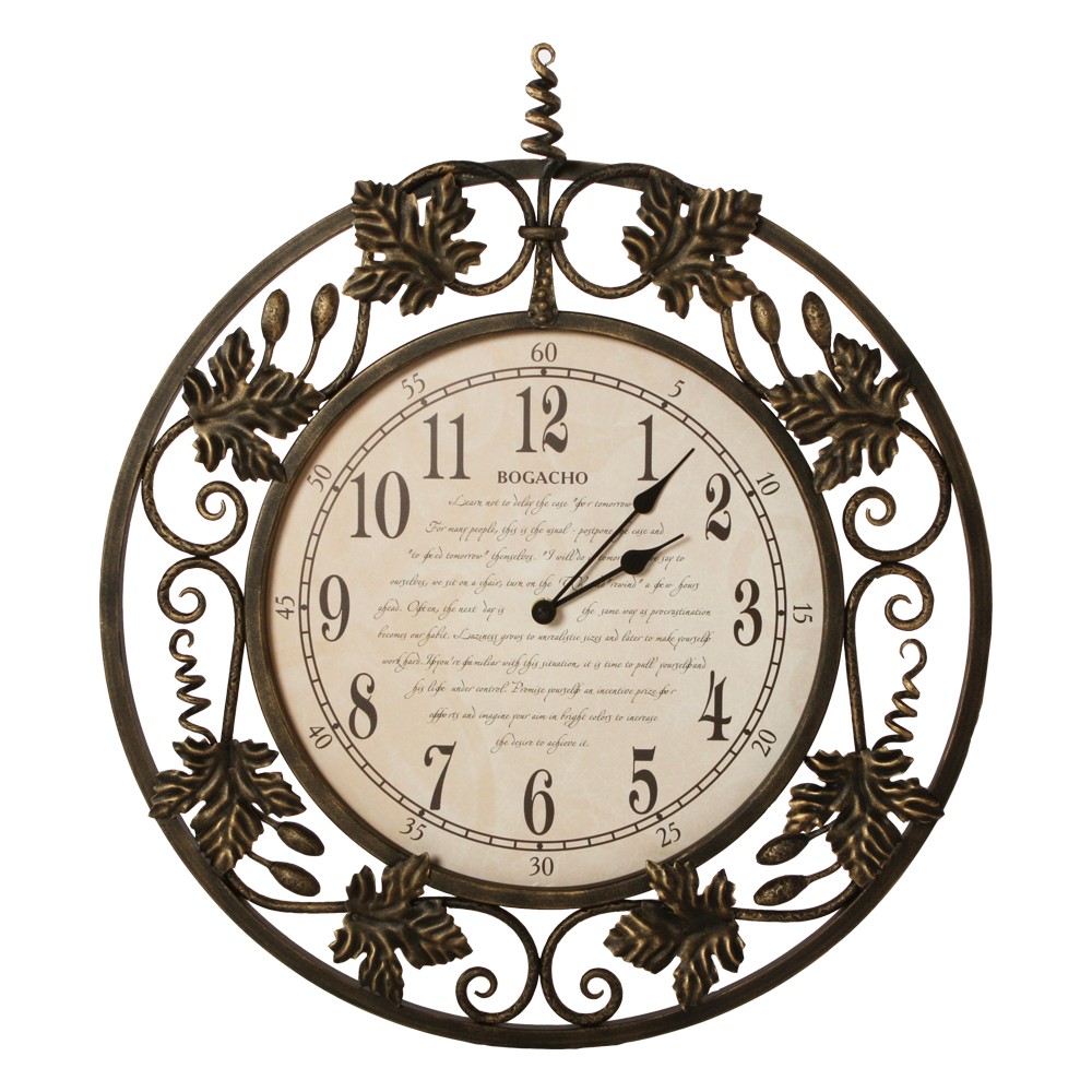 Настенные часы с открытым циферблатом (без стекла), механизм кварцевый. Часы выполнены вручную и могут иметь небольшие отличия по форме, цвету, размеру. Именно поэтому изделия с элементами художественной ковки имеют более высокую художественную ценность. Согласно философии фен-шуй, металл символизирует финансовый успех, богатство и изобилие.