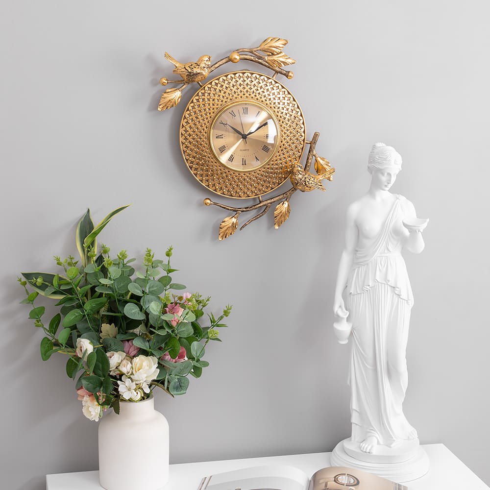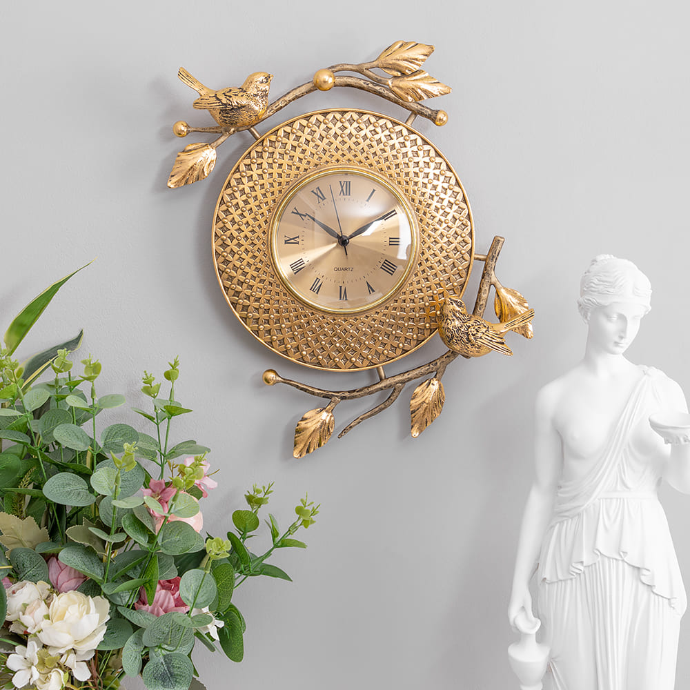 Настенные часы от BOGACHO это стильный декор для Вашего дома. Они идеально впишутся в интерьер квартиры и создадут уют на даче. Их можно повесить на стену кухни, использовать как украшение на стену для гостиной, особенно в классическом интерьере, лофт, скандинавский стиль. Благодаря бесшумному часовому механизму часы можно разместить в детской комнате, звук стрелки не будет мешать сну малышей. Выполнены полностью вручную методом горячей ковки, позолочены мастерами фабрики. Материал изделия: МДФ, кованная сталь, механизм кварцевый, на батарейках. Настенные часы просты в уходе, нужно только иногда менять батарейки, в отличие от механических часов, где нужно регулярно заводить часовой механизм. Часы работают от 1 батарейки АА (в комплекте). Механизм JL6262-16мм с плавным ходом. Часы интерьерные имеют удобное, безопасное крепление на любую стену, включая обои, и отлично дополнят обстановку и декоративные предметы домашнего интерьера или офиса. Крепление входит в комплект. Оригинальность форм и необычное дизайнерское оформление циферблата позволяют подобрать идеальный аксессуар для любого помещения. Часы настенные интерьерные - идеальный декор для создания красоты и уюта, они придадут шик любой комнате: гостиная, кухня, спальня, зал, столовая, прихожая детская с любым дизайном. Диаметр циферблата - 13 см.