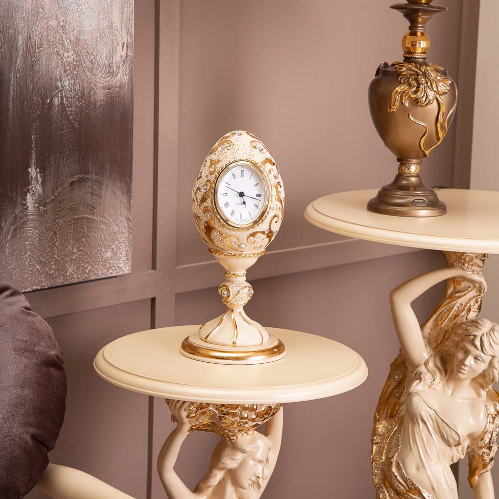 Уникальное творениеЭто произведение дизайнерского искусства станет достойным украшением любого классического интерьера. Материал, из которого выполнены часы, - мрамор, вылитый вручную, подвергнутый дополнительной обработке — патинированию и золочению поталью.