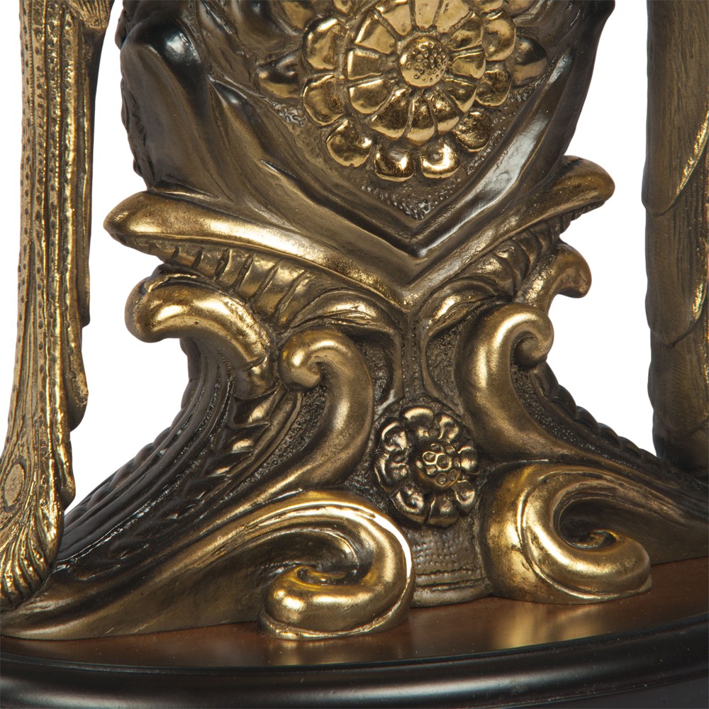 Материалы изготовления и размеры изделияИзделие производится из высококачественного коелгинского мрамора, который привозится в виде мраморной крошки, затем отливается вручную и подвергается дополнительной обработке — патинированию и золочению поталью. Основание изделия декорируется подставкой из Мдф.