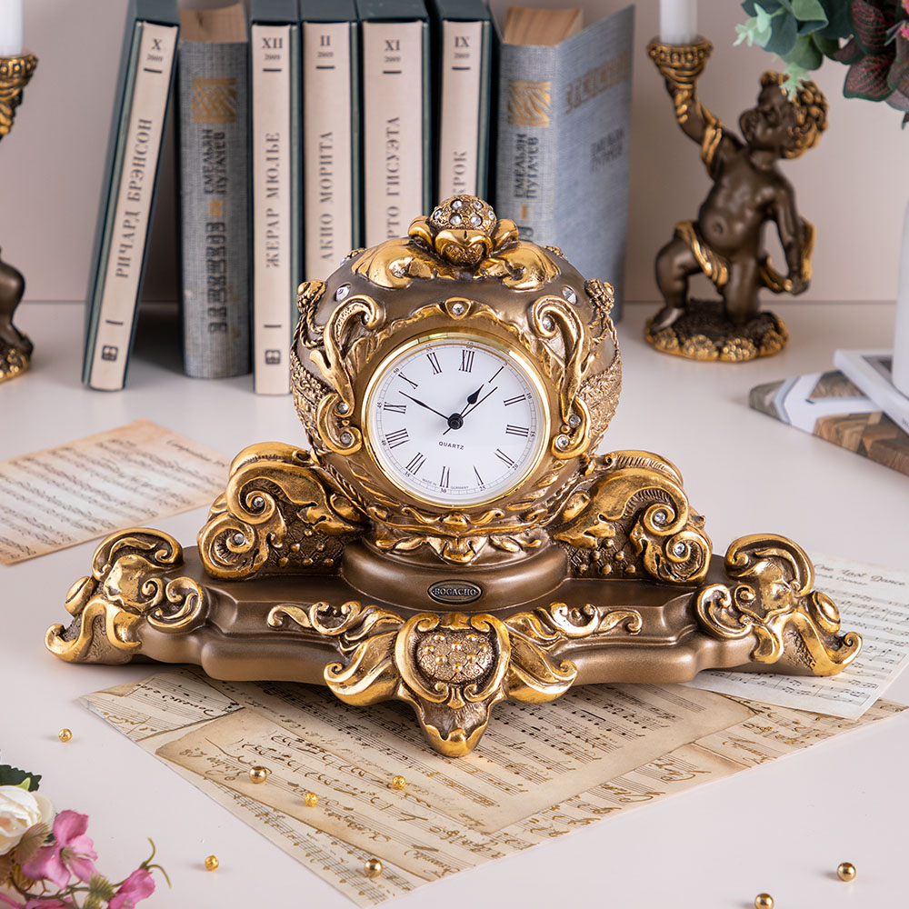 Уникальное творениеЭто произведение дизайнерского искусства станет достойным украшением любого классического интерьера. Материал, из которого выполнены часы - мрамор, вылитый вручную, подвергнутый дополнительной обработке — патинированию и золочению поталью. Диаметр циферблата - 8.5 см.