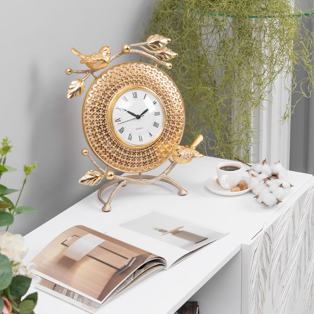 Часы работают от одной батарейки маркировки GP 910A – BC, RL – 1, напряжение 1.5В (входит в комплект). Настольные часы от BOGACHO это стильный декор для Вашего дома. Также можно порадовать коллег, разместив их в кабинете. Благодаря бесшумному часовому механизму часы можно разместить в детской комнате, звук стрелки не будет мешать сну малышей.