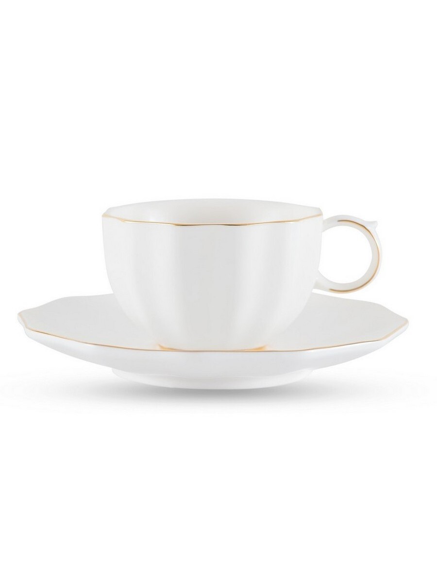 Чайная пара GIPFEL AFRODITA 3890. В наборе чашка 160 мл с блюдцем. Фарфоровая посуда Серия Afrodita отличатся белоснежным цветом, волнистыми мягкими гранями и золотой окантовкой по краям. Размеры чашки: 11,2 х 8,5 х 5,5 см. Размеры блюдца: 14,8 х 2.1 см.