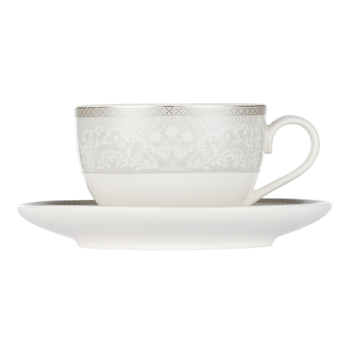 Чайная пара Gipfel Annet 42792: чашка 150 мл и блюдце 14 см из фарфора белого цвета с классическим рисунком.