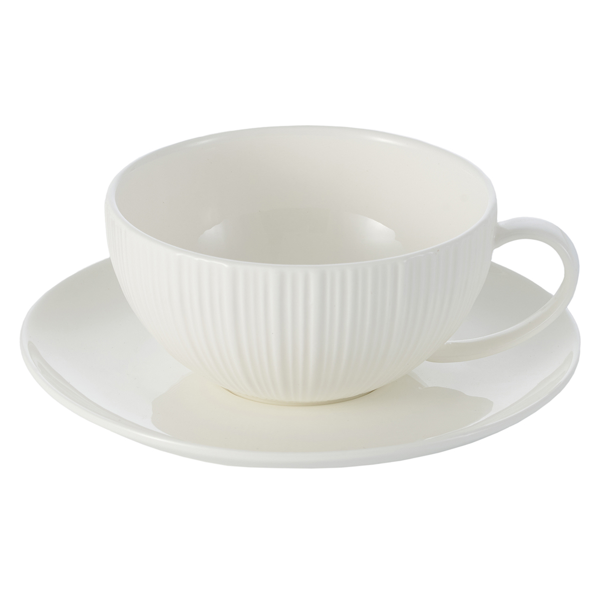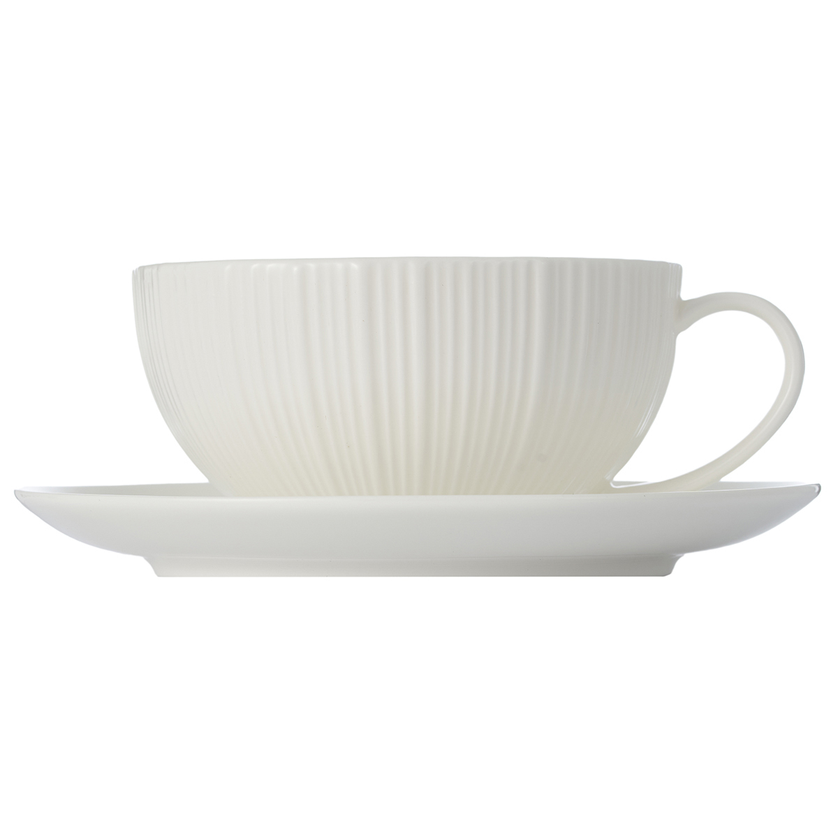 Чайная пара выполнена в классическом стиле белого цвета. Утонченные формы и глянцевая поверхность с оригинальным тиснением делают посуду коллекции Elegia великолепным украшением стола.