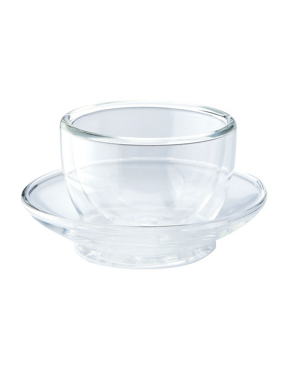 Данный набор, состоящий из чашки с блюдцем, выполнен из жаропрочного стекла, отличающегося повышенной прочностью и не боящегося мытья в посудомоечной машине. Двухслойная конструкция посуды позволяет сохранить комфортную температуру поверхности стекла, даже когда чашка наполнена крутым кипятком. Небольшой объем (75 мл) идеально подойдет для крепкого кофе, а элегантный дизайн набора позволит ему органично вписаться в любой кухонный интерьер.