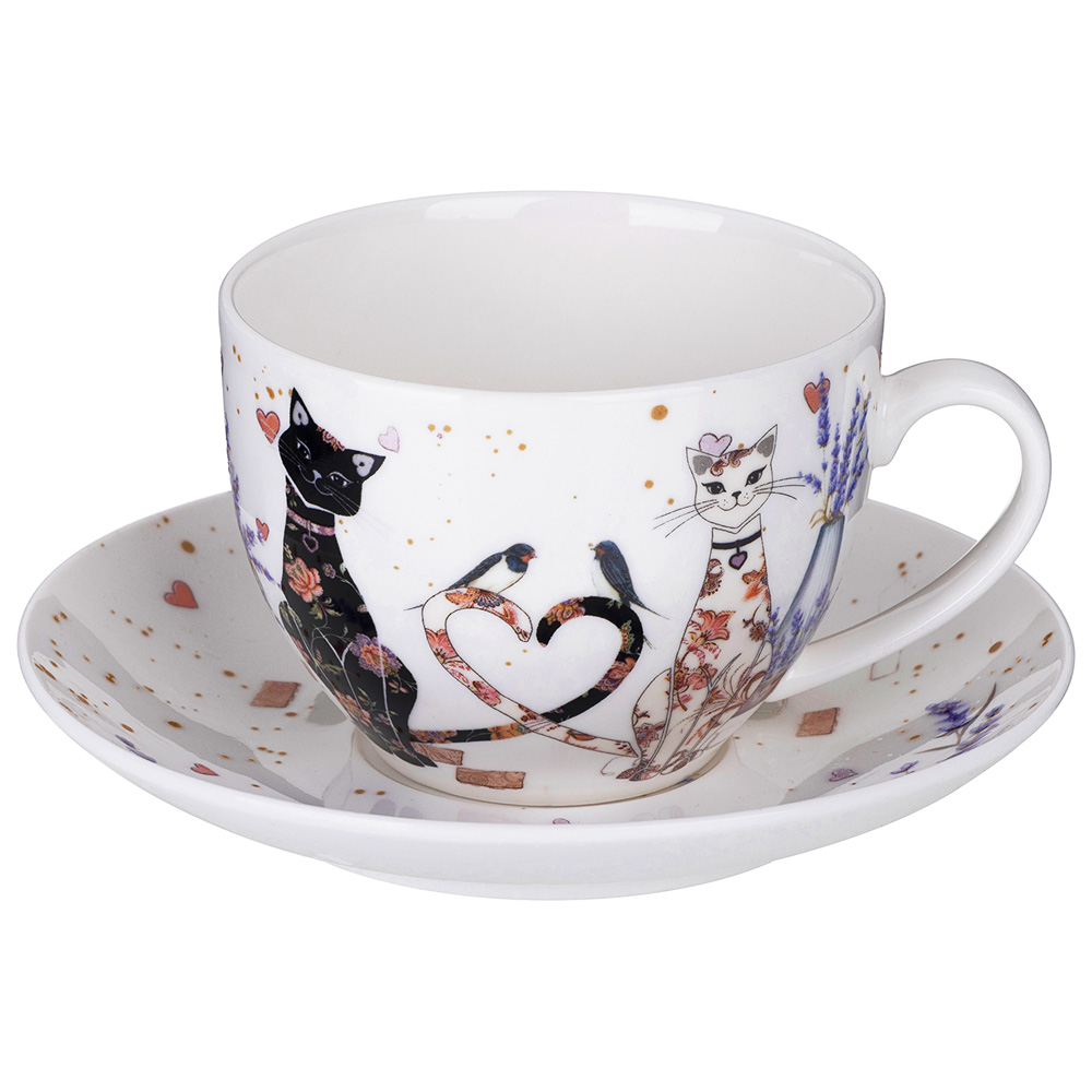 ТM Lefard эксклюзивная посуда серии «Лавандовые коты» создаст атмосферу уюта и поднимет настроение всем и каждому. Предметы украшены трогательными рисунками: влюблённые коты в окружении нежных соцветий лаванды. Упрочненный фарфор, рельефная деколь, блестящая глазурь. Коллекция представлена наборами обеденных, закусочных тарелок, салатниками оптимальных объемов, набором посуды, чайными парами и кружками. Легко сервировать любой стол на завтрак, обед или семейный ужин. Посуда хороша для ежедневного использования. Прекрасный подарок маме, бабушке, сестре, подруге. Красочная фирменная упаковка. Вся продукция сертифицирована и безопасна для контакта с пищевыми продуктами. Легка в уходе, не боится мытья в посудомоечной машине, использования в микроволновой печи.