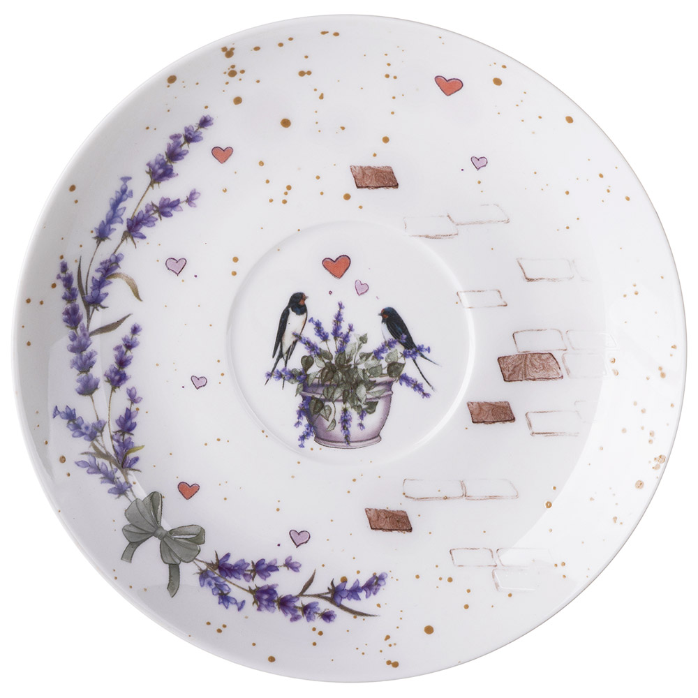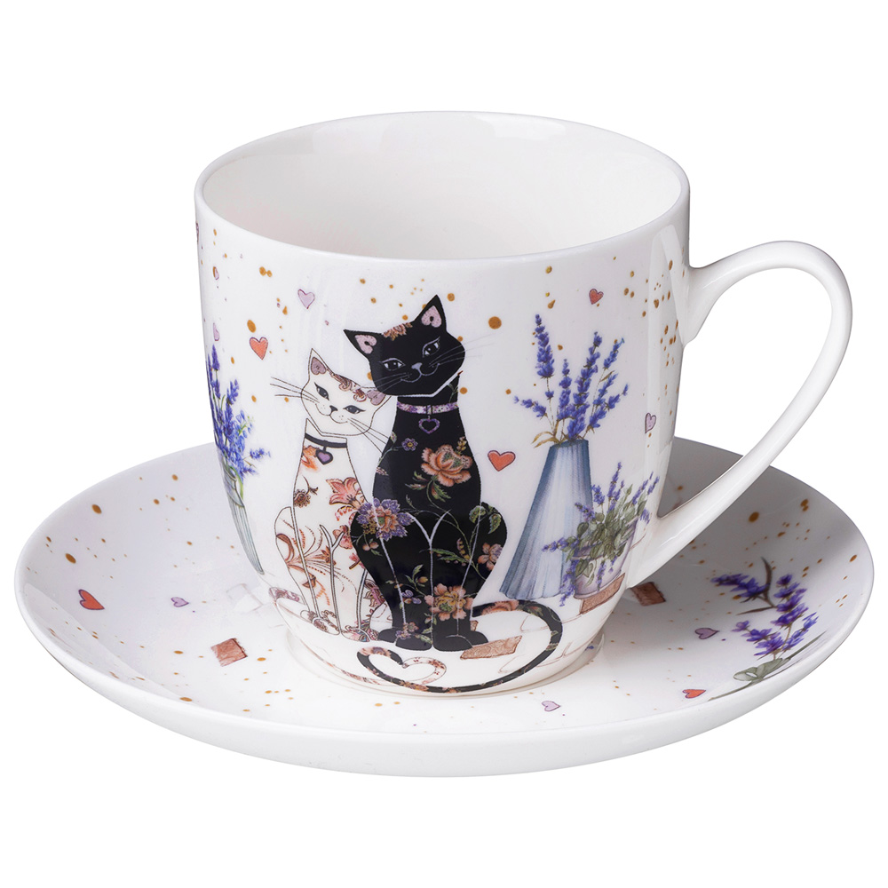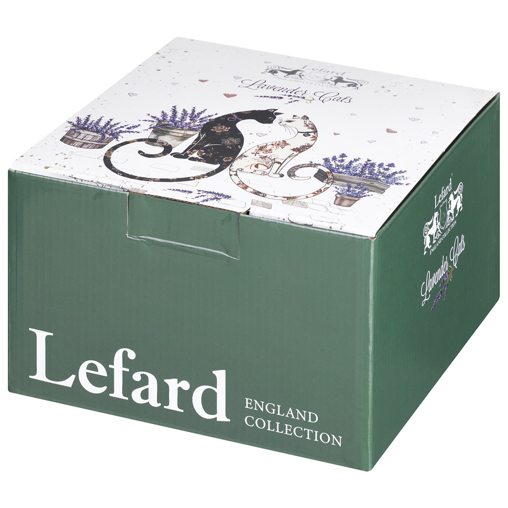 ТM Lefard эксклюзивная посуда серии «Лавандовые коты» создаст атмосферу уюта и поднимет настроение всем и каждому. Предметы украшены трогательными рисунками: влюблённые коты в окружении нежных соцветий лаванды. Упрочненный фарфор, рельефная деколь, блестящая глазурь. Коллекция представлена наборами обеденных, закусочных тарелок, салатниками оптимальных объемов, набором посуды, чайными парами и кружками. Легко сервировать любой стол на завтрак, обед или семейный ужин. Посуда хороша для ежедневного использования. Прекрасный подарок маме, бабушке, сестре, подруге. Красочная фирменная упаковка. Вся продукция сертифицирована и безопасна для контакта с пищевыми продуктами. Легка в уходе, не боится мытья в посудомоечной машине, использования в микроволновой печи.