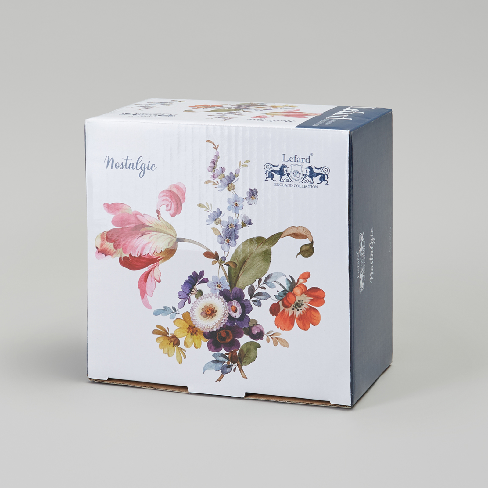 ТМ LEFARD «NOSTALGIE» - это коллекция по мотивам известного декора, появившегося в середине 18 века, в виде цветов и растений, собранных в прекрасные букеты в стиле рококо. Узор, появившийся впервые на изделиях Мейсенской мануфактуры в Германии, до сих пор путешествует по фарфору разных стран. Его можно встретить на немецких сервизах, чешском фарфоре. Дизайнеры LEFARD вдохнули еще одну жизнь в эту знаменитую тему, добавили краски кобальта и золотые элементы. Качественный тонкостенный фарфор, уникальные формы, неизменная классика. Это прекрасный подарок. Посуда прошла сертификацию, безопасна для контакта с пищевыми продуктами. Использовать только мягкие моющие средства. Нельзя мыть в посудомоечной машине, ставить в микроволновую печь.