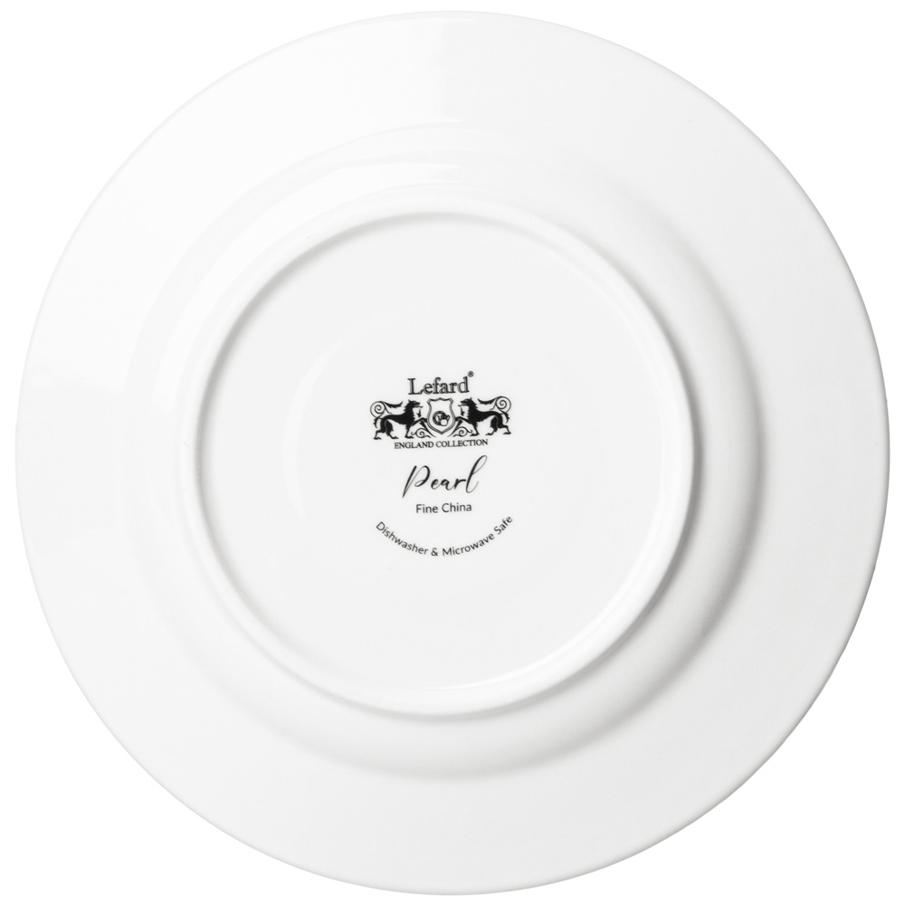 ТМ LEFARD коллекция "PEARL - ЖЕМЧУЖИНА" - трендовая, белоснежная, с оригинальным рельефом по краю в виде горошин, базовая для любой сервировки, выпонена из фарфора Fine China, более простого и дешёвого нового материала, где в составе имеется искусственный минерал, который улучшает характеристики фарфора, делая его прочнее, тоньше и легче. Себестоимость получается ниже, а по прочности и внешнему виду он зарекомендовал себя с лучшей стороны и завоевал доверие покупателей. Удобные формы и размеры. Прекрасно сочетается с любой декорированной посудой. Ваш стол неотразим! Можно мыть в посудомоечной машине, использовать в микроволновой печи.