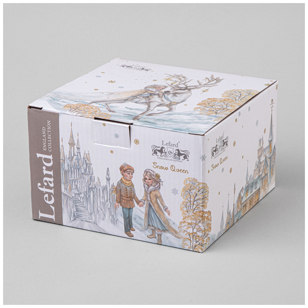 TM Lefard коллекция "Снежная Королева" - эксклюзивная коллекция по мотивам любимой сказки Ганса Христиана Андерсена. История об удивительных приключениях Кая и Герды, когда в их судьбу вмешаваются волшебные силы, учит быть храбрыми, стойкими, целеустремленными, преданными дружбе и верить в собственные силы. Изделия выполнены из качественного тонкостенного фарфора. Стильная цветная упаковка, прекрасный подарок. Продукция сертифицирована, безопасна для контакта с пищевыми продуктами. Разрешено ставить в микроволновую печь, не рекомендуется мыть в посудомоечной машине.
