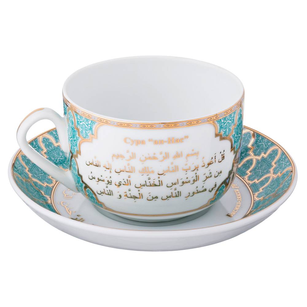 ТМ LEFARD представляет эксклюзивную коллекцию посуды «Суры из Корана». Кувшины, чайники, сахарницы, кружки, чайные пары, декоративные тарелки и другие предметы выполнены из высококачественного тонкостенного фарфора. Восточный орнамент, небольшие отрывки Сур из Корана на классическом арабском и русском языках с отделкой золотом украшают изделия. Это прекрасный мусульманский подарок, всегда нужный и теплый. Относитесь к нему бережно и с почтением. Посуду коллекции можно использовать как в повседневной жизни, так и на торжественном приеме. Не рекомендуется мыть в посудомоечной машине и использовать в микроволновой печи.