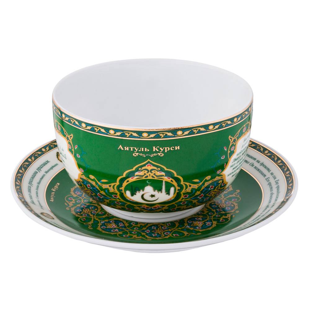 ТМ LEFARD представляет эксклюзивную коллекцию посуды «Суры из Корана». Кувшины, чайники, сахарницы, кружки, чайные пары, декоративные тарелки и другие предметы выполнены из высококачественного тонкостенного фарфора. Восточный орнамент, небольшие отрывки Сур из Корана на классическом арабском и русском языках с отделкой золотом украшают изделия. Это прекрасный мусульманский подарок, всегда нужный и теплый. Относитесь к нему бережно и с почтением. Посуду коллекции можно использовать как в повседневной жизни, так и на торжественном приеме. Не рекомендуется мыть в посудомоечной машине и использовать в микроволновой печи.