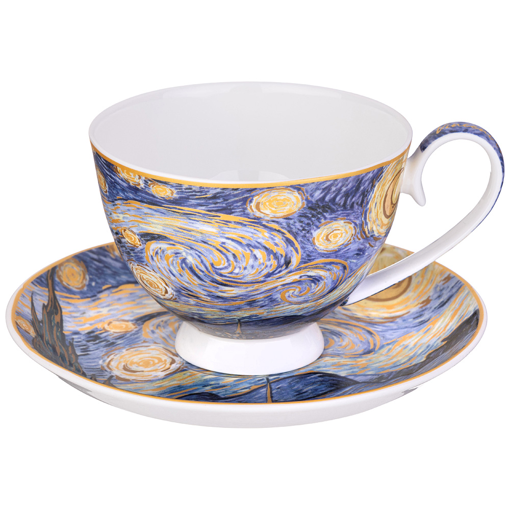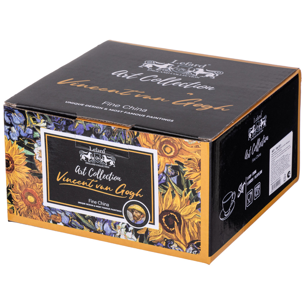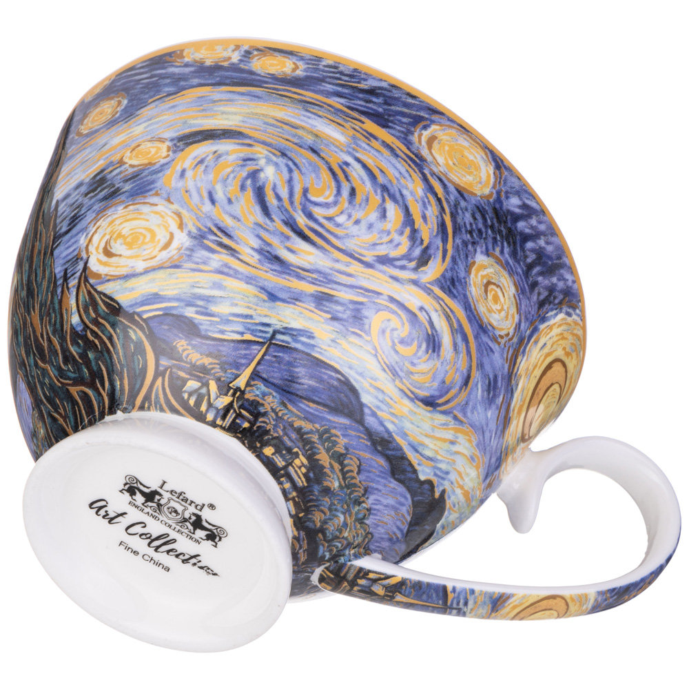 Арт Коллекция для ценителей прекрасного. Изделия из тонкостенного фарфора. Посуда прошла сертификацию. Безопасна для контакта с пищевыми продуктами. Декор по мотивам картин Винсента Ван Гога. Удобная форма. Отличный подарок. Разрешено использование в микроволновой печи, можно мыть в посудомоечной машине мягкими моющими средствами.