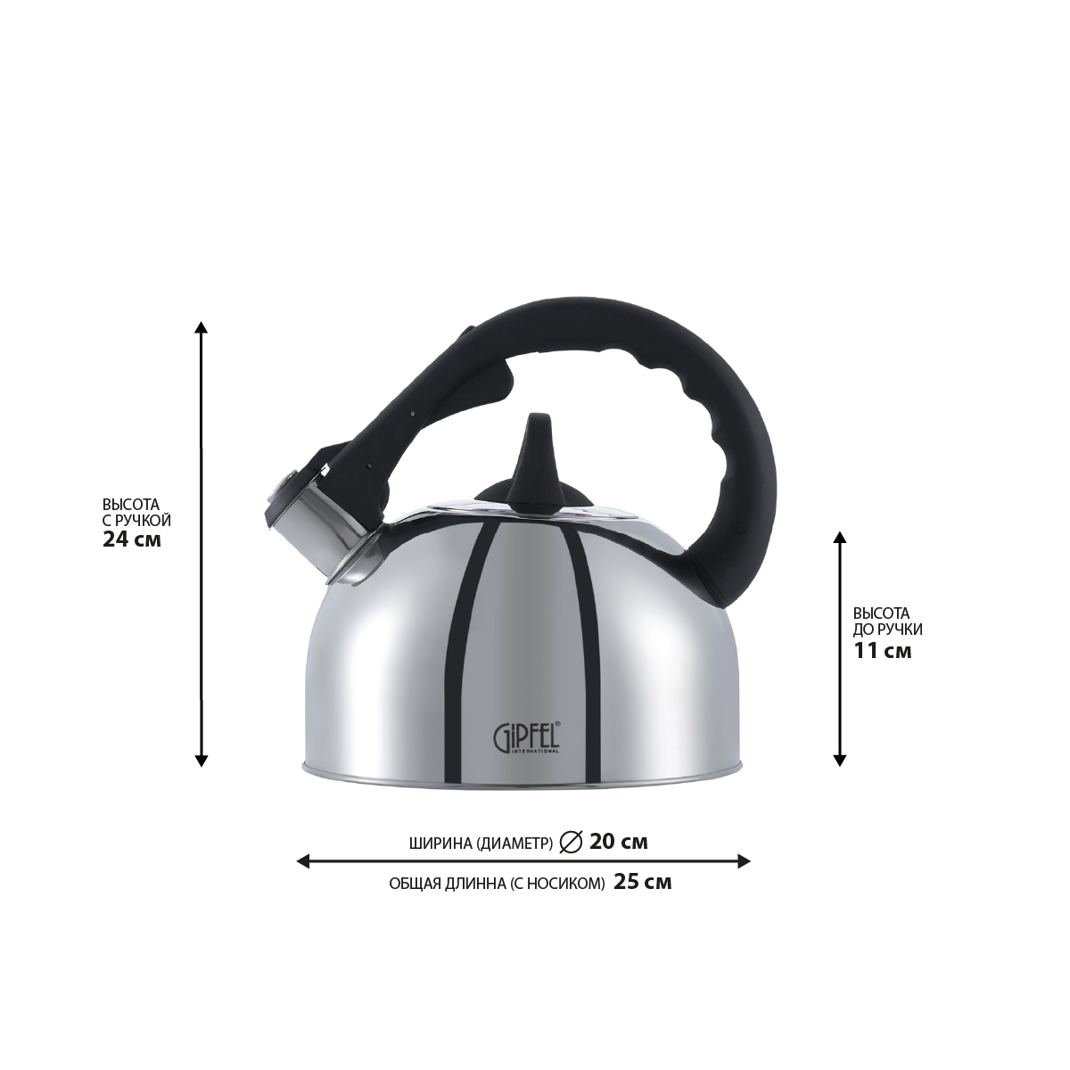 Чайник со свистком Gipfel COSMO 8601 2,5 л. Материал: нержавеющая сталь. Цвет: металл.