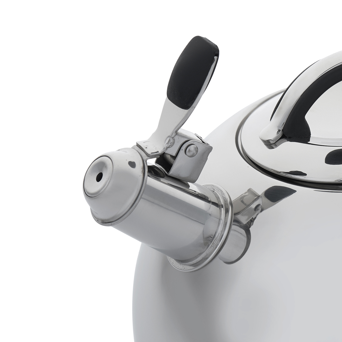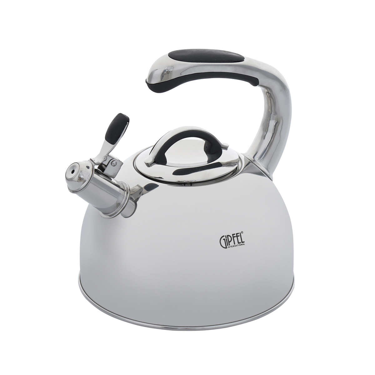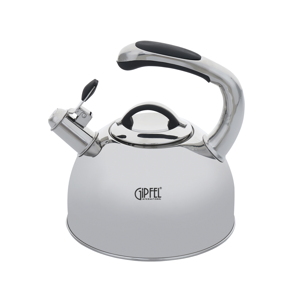 Чайник для кипячения воды Gipfel POESIE 1122 со свистком. Чайник имеет свисток на носике. Ручка из нержавеющей стали с накладками из пластика. У чайника индукционное дно, толщина дна 3 мм. Толщина стенок 0,5 мм. Чайник выполнен из нержавеющей стали 18/10.