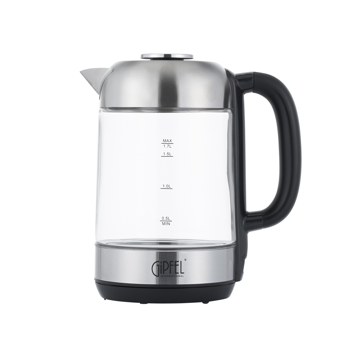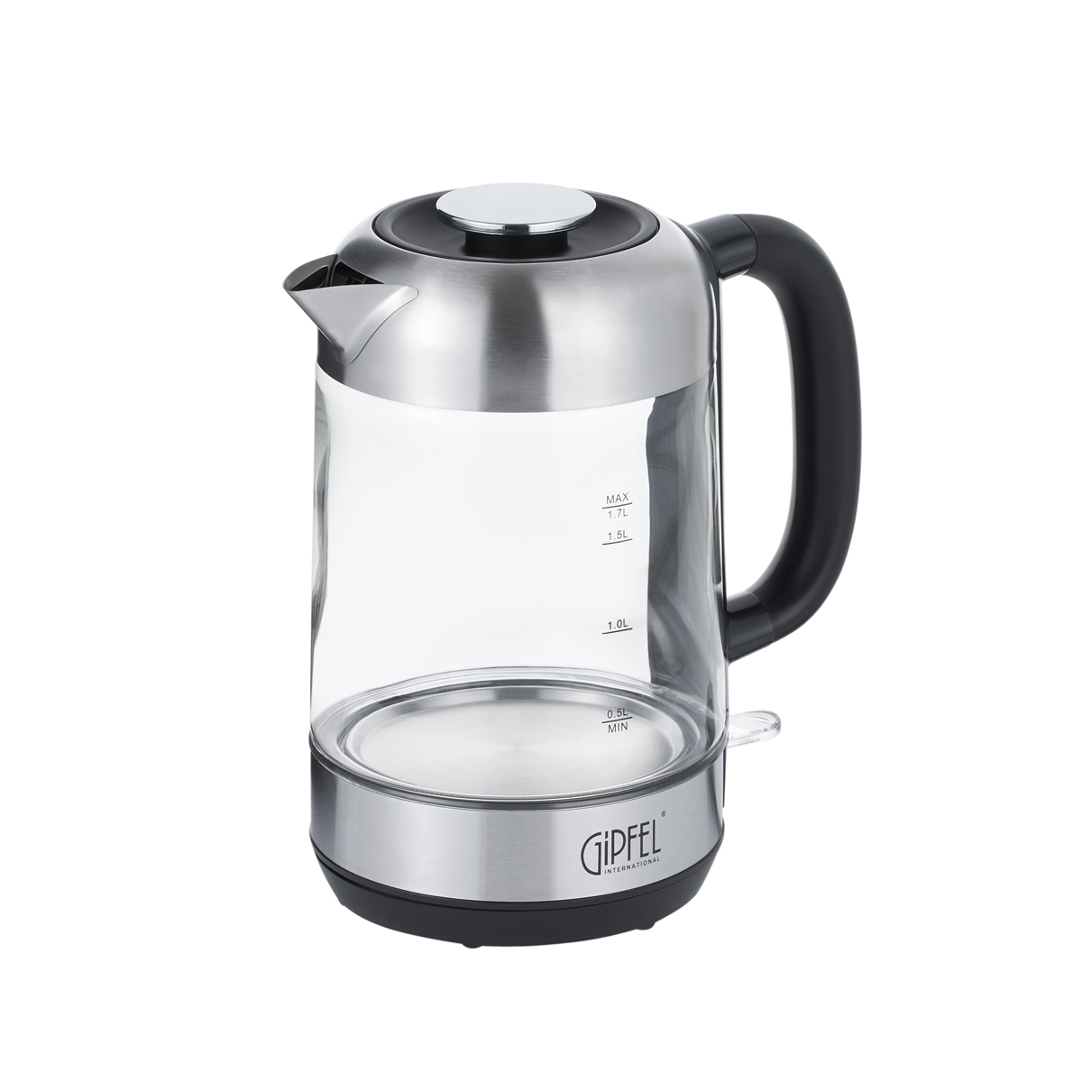 Чайник электрический Gipfel Etna 50966 объемом 1,7 л. Изготовлен из боросиликатного стекла. Чайник комфортно держать в руке благодаря большой пластиковой ручке. Крышка съемная. На носике фильтр от накипи.