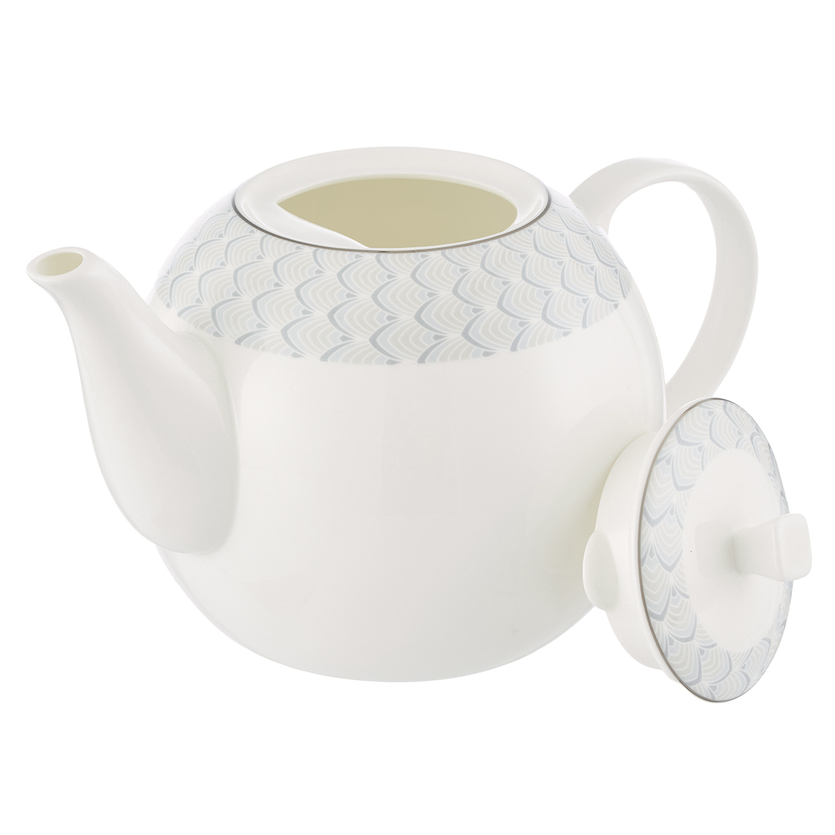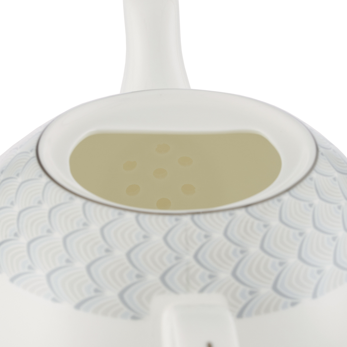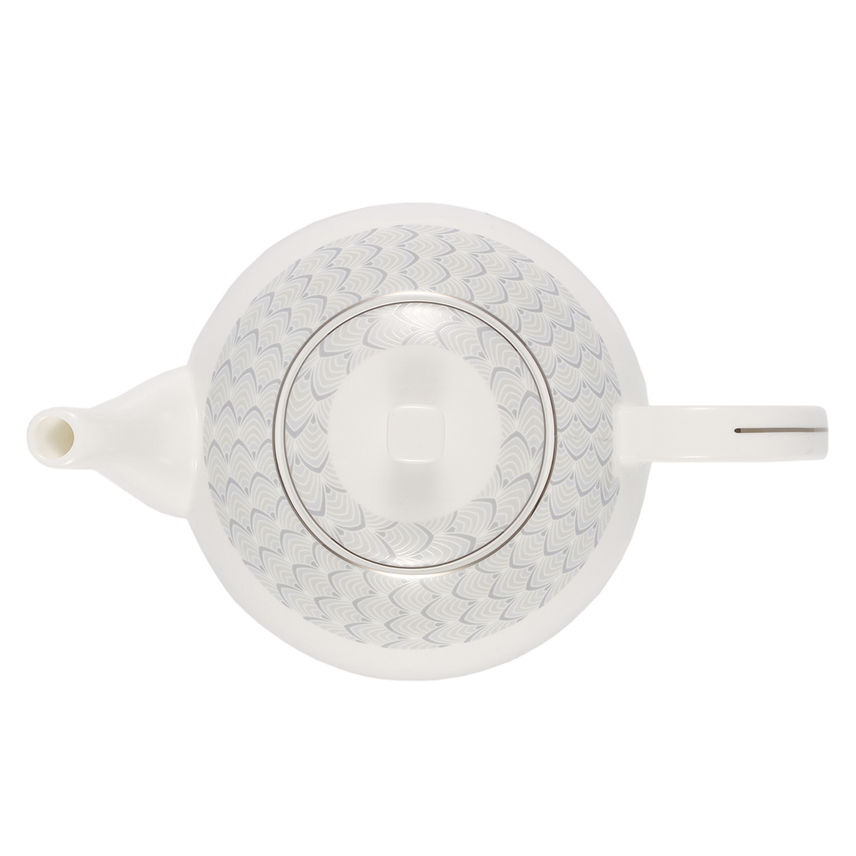 Чайник Gipfel Caroline выполнен в классическом стиле: белоснежную поверхность украшает по бортику изящный рельефный геометрический орнамент в молочно-серых тонах. Серебристый кант по краю дополняет композицию. Утонченные формы, элегантный декор и глянцевая поверхность делают посуду коллекции Caroline великолепным украшением стола.