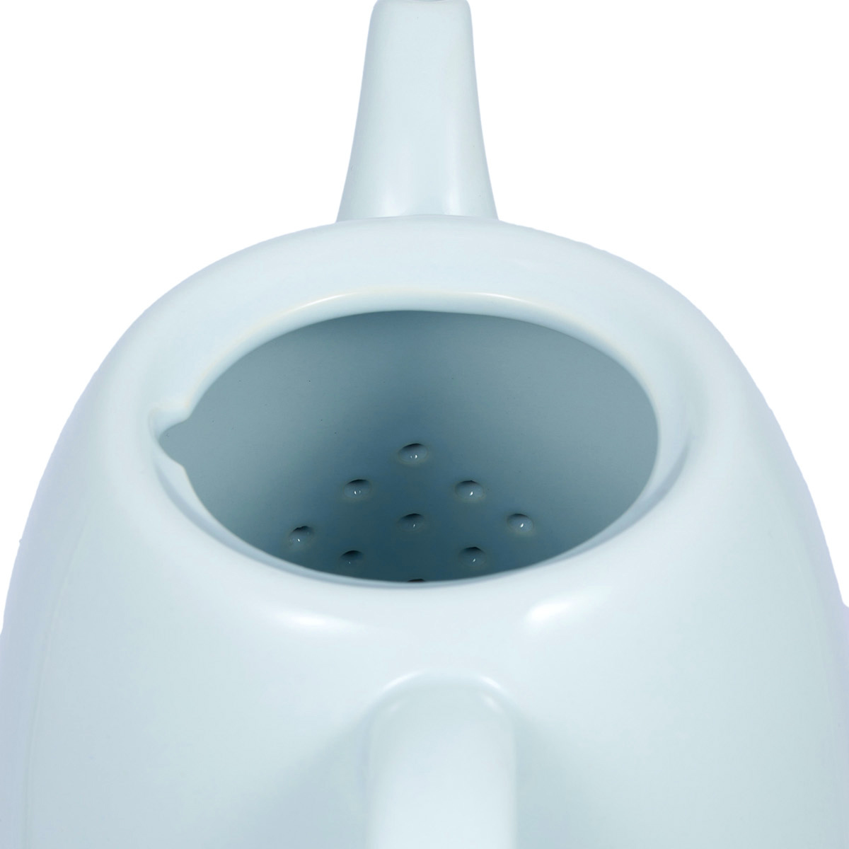 Чайник выполнен в нежном молочно-голубом цвете.