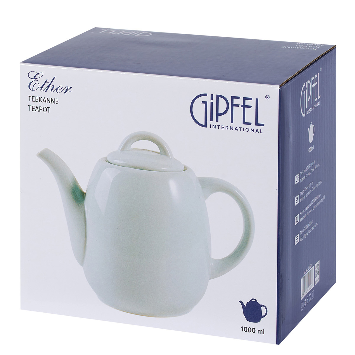 Чайник заварочный Gipfel Ether 52220 1000 мл. Изготовлен из керамики. Цвет: молочно-голубой.