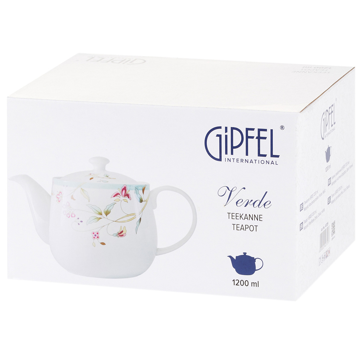 Чайник заварочный Gipfel Verde 40729. Объем чайника 1200 мл. Изготовлен из костяного фарфора, легкого и экологически чистого материала.