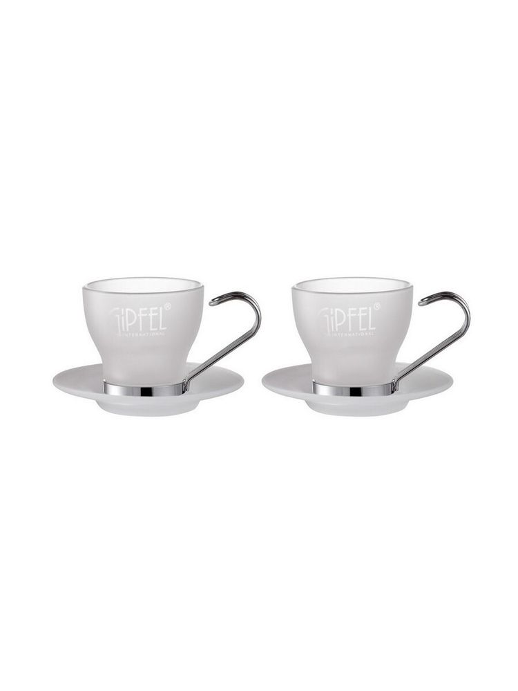 Чайный набор Gipfel GLACIER 7946. В наборе 2 чашки для эспрессо объемом 105 мл и 2 блюдца. Набор сделан из матового стекла с фирменным логотипом.