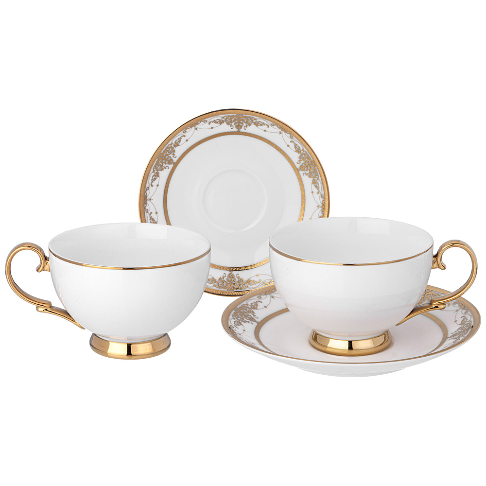 ТМ LEFARD Чайный набор "Дворец" для торжественых застолий и семейных обедов. Изысканный фарфор Bone Pocelain с эффектом костяного фафора, тонкий и полупрозрачный, прочный и никогда не темнеет. Утонченный кружевной рельефный орнамент выглядит объемным и привлекательным благодаря различной обработке выпуклых и базовых поверхностей. Изящная золотая обводка придает блеск и торжественность. Эта посуда замечательный подарок на свадьбу, юбилей, день рождения, который наверняка пригодится каждой семье, запомнится навсегда и прослужит долгие годы. Дизайнеры торговой марки предлагают чайный и обеденный сервизы и наборы тарелок и чайных пар, чтобы сформировать полную сервировку стола предметами коллекции на 6 или 12 персон.
