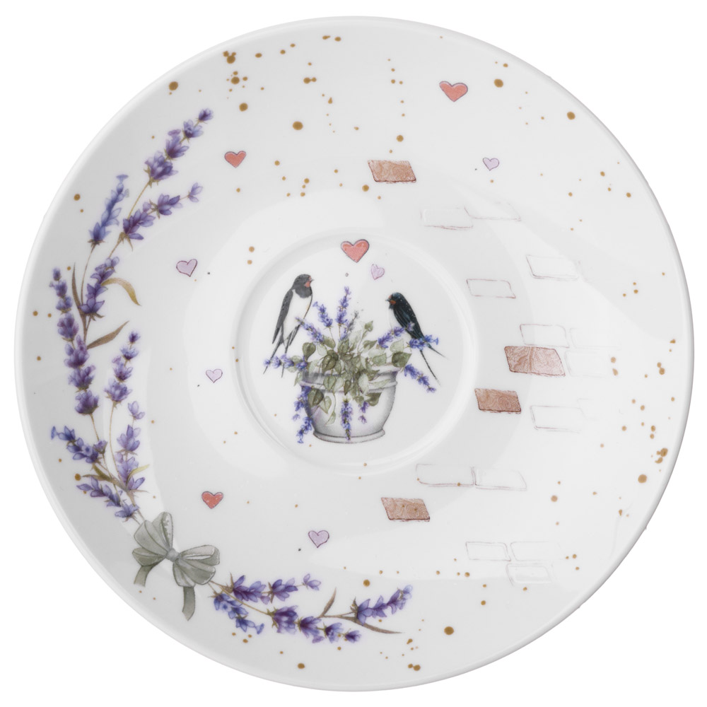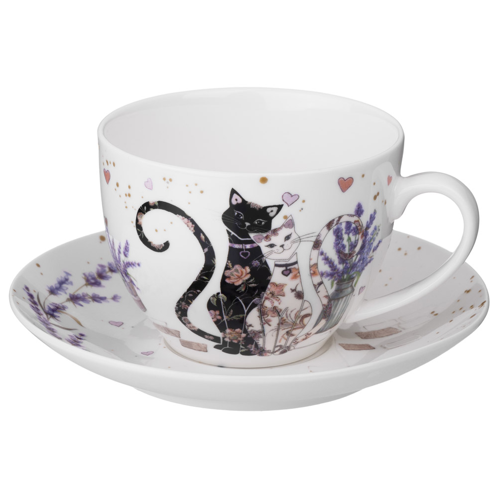 ТM Lefard эксклюзивная посуда серии «Лавандовые коты» создаст атмосферу уюта и поднимет настроение всем и каждому. Предметы украшены трогательными рисунками: влюблённые коты в окружении нежных соцветий лаванды. Упрочненный фарфор, рельефная деколь, блестящая глазурь. Коллекция представлена наборами обеденных, закусочных тарелок, салатниками оптимальных объемов, набором посуды, чайными парами и кружками. Легко сервировать любой стол на завтрак, обед или семейный ужин. Посуда хороша для ежедневного использования. Прекрасный подарок маме, бабушке, сестре, подруге. Красочная фирменная упаковка. Вся продукция сертифицирована и безопасна для контакта с пищевыми продуктами. Легка в уходе, не боится мытья в посудомоечной машине, использования в микроволновой печи.