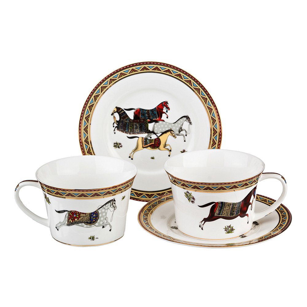 ТМ Lefard коллекция Passage мужественная и стильная. Движения лошадей эластичные, элегантные с активным импульсом. Каждая диагональная пара ног поднимается и ставится в очень точном ритме и с подвисанием. Шея лошади приподнята и округлена, затылок находится в высшей точке, голова опущена почти вертикально. Этот ритм завораживает. Посуда для сервировки стола из тонкостенного упрочненного фарфора неповторима. Прямые формы. Декор с богатым орнаментом и золотой окантовкой. Посуда прошла сертификацию. Безопасна для контакта с пищевыми продуктами. Отличный подарок. Не использовать в микроволновой печи, не рекомендуется мыть в посудомоечной машине.