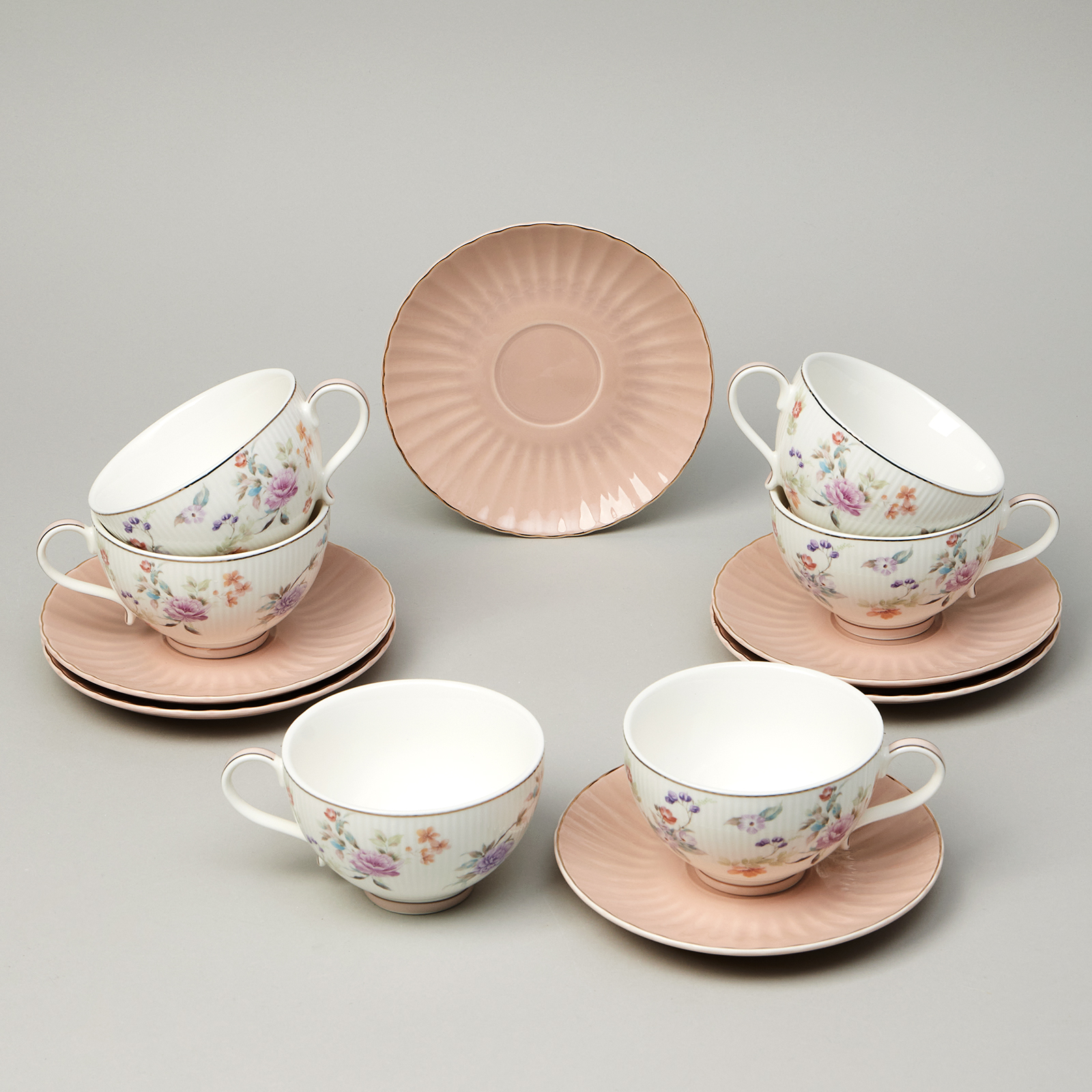 ТМ LEFARD коллекция "Времена года" выполнена из тонкостенного фарфора. Стильная форма, вместительный объем, модное сочетание пастельных тонов и цветочной деколи, отделка золотом - все это делает коллекцию неотразимой и очень привлекательной. Форма и цвет посуды способны оказать магическое действие на всех, кто находится за столом. «Времена года» могут согреть душу, создать тепло и уют в доме. Это прекрасный подарок. Продукция прошла сертификацию и безопасна для контакта с пищевыми продуктами. Можно ставить в микроволновую печь, не рекомендуется мыть в посудомоечной машине. Комплектность: 6 чашек 250 мл., 6 блюдец 15*7 см.