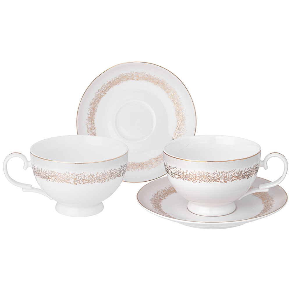 ТМ LEFARD Чайный набор "Золотой песок" для торжественых застолий и семейных обедов. Изысканный фарфор Bone Pocelain с эффектом костяного фафора, тонкий и полупрозрачный, прочный и никогда не темнеет. Утонченный кружевной рельефный орнамент выглядит объемным и привлекательным благодаря различной обработке выпуклых и базовых поверхностей. Изящная золотая обводка придает блеск и торжественность. Эта посуда замечательный подарок на свадьбу, юбилей, день рождения, который наверняка пригодится каждой семье, запомнится навсегда и прослужит долгие годы. Дизайнеры торговой марки предлагают чайный и обеденный сервизы и наборы тарелок и чайных пар, чтобы сформировать полную сервировку стола предметами коллекции на 6 или 12 персон.