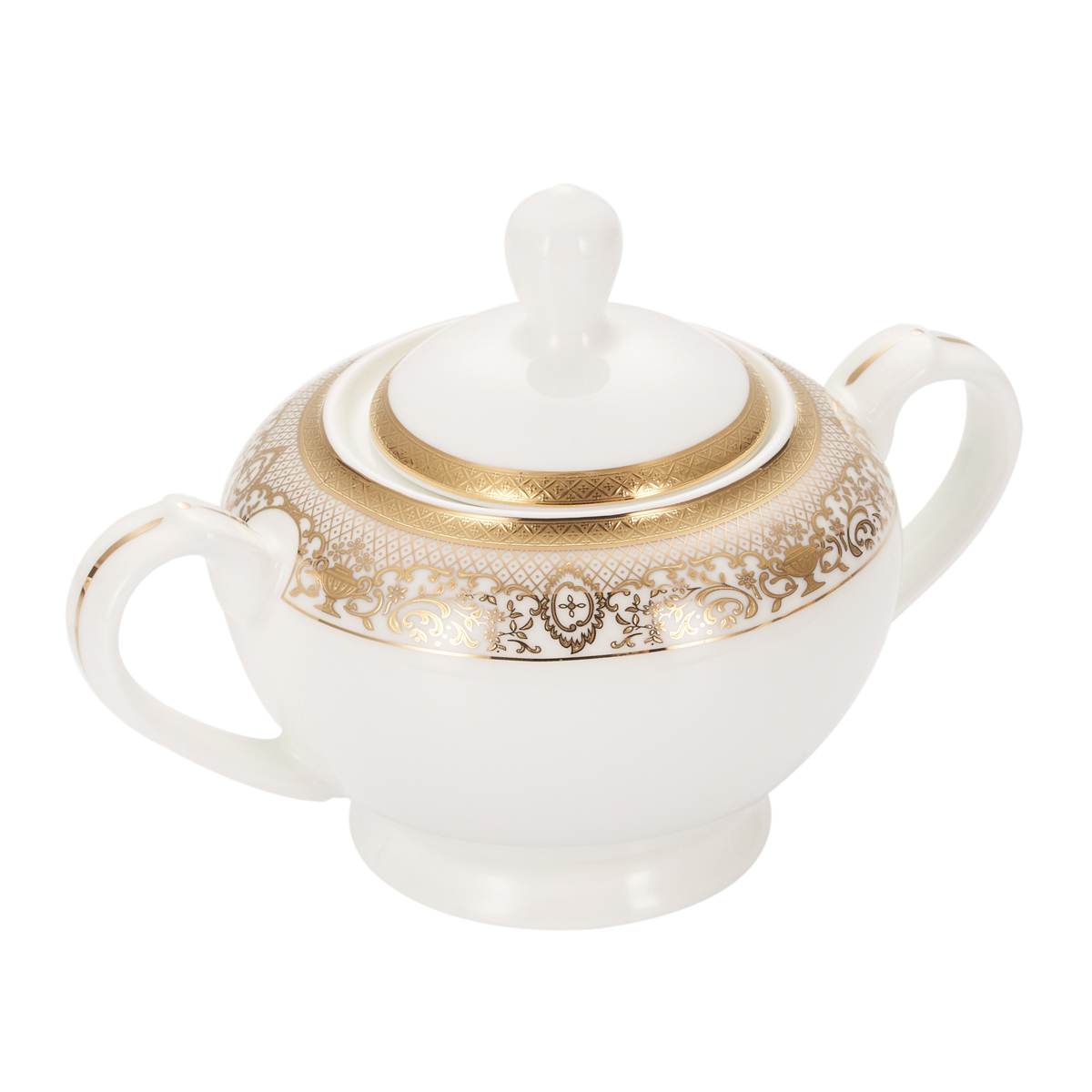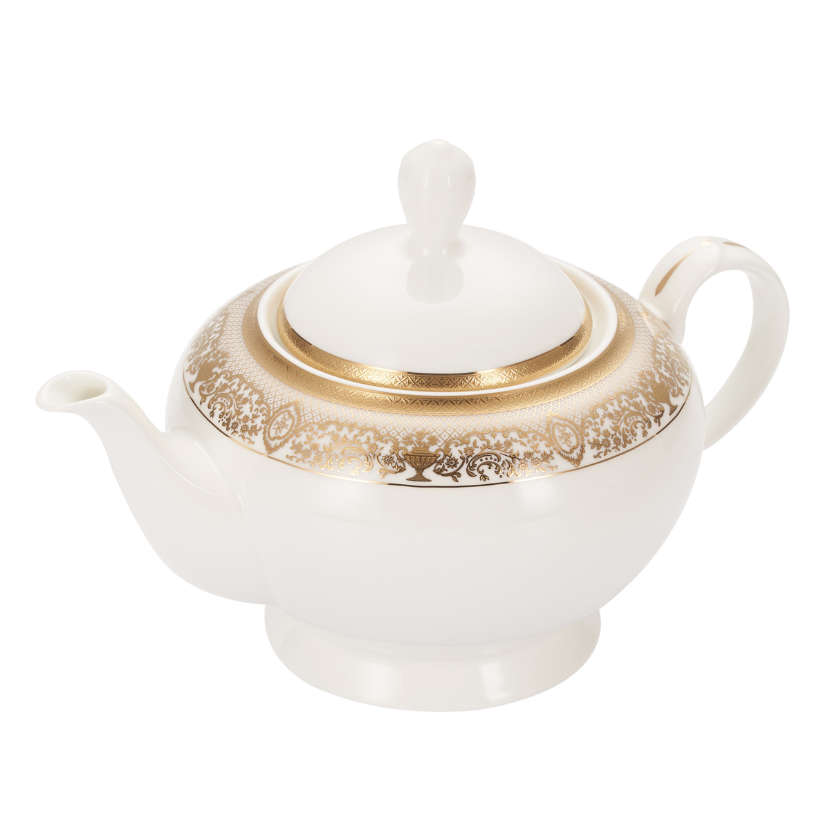 Сервиз чайный GIPFEL ARGENTO 40982 на 6 персон из 15 предметов: чашка 200мл, 6шт., блюдце 16см, 6шт., чайник заварочный, 1100мл, 1шт., молочник, 1 шт., сахарница, 1 шт. Цвет: белый с золотистым кантом. Материал: премиальный фарфор.