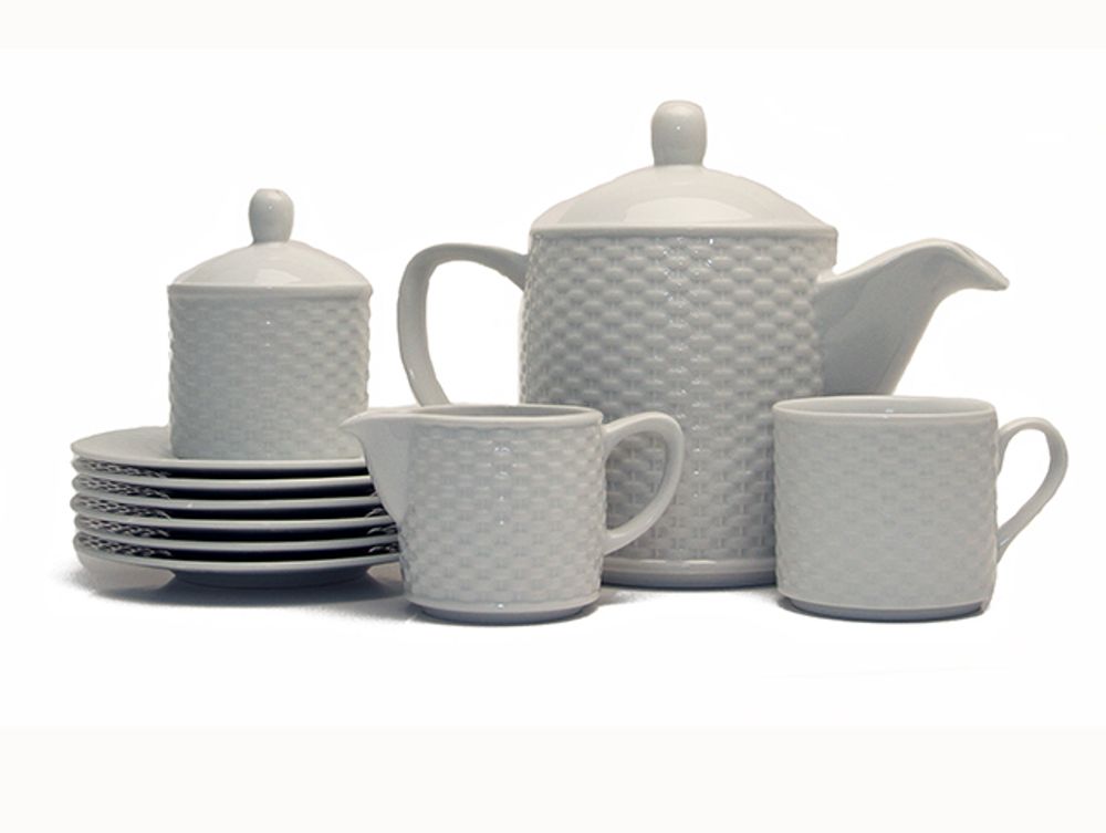 Сервиз чайный POLO PL17CT00 15 предметов на 6 персон. В сервиз входят 6 чашек по 220 мл, 6 блюдец диаметром 16 см, чайник объемом 1250 мл, сахарница 330 мл, молочник 280 мл. Сервиз выполнен из фарфора белого цвета с объемным рисунком-орнаментом.