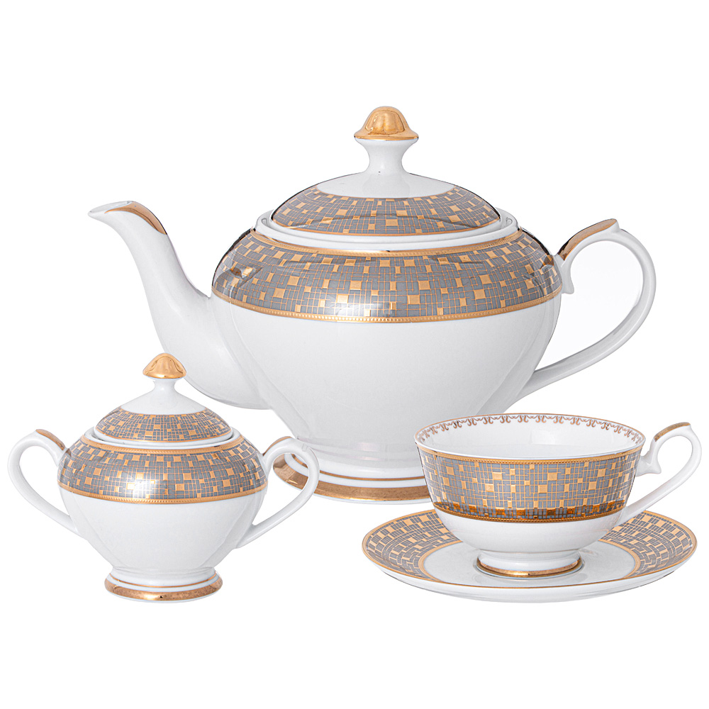 Комплектность: чайник 1300 мл - 1 шт., сахарница 250 мл - 1 шт., чашка 270 мл - 6 шт., блюдце - 6 шт.