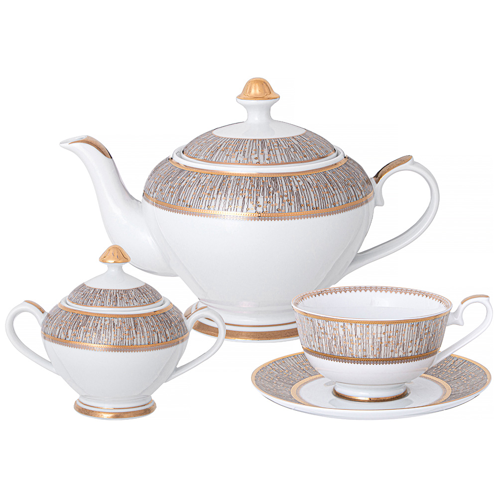 Комплектность: чайник 1300 мл - 1 шт., сахарница 250 мл - 1 шт., чашка 270 мл - 6 шт., блюдце - 6 шт.