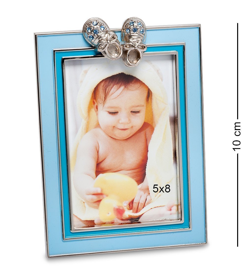 Классический вариант фоторамки с декором в виде небольших башмачков представлен рамкой «Маленький принц». В ней поместится фотография стандартного размера 10×15. Она декорирована ярко голубым фоном, имеет прямоугольный вид и может стоять только в вертикальном положении, так как при перевороте горизонтально, башмачки будут смотреться немного иначе и будут сбоку фоторамки.