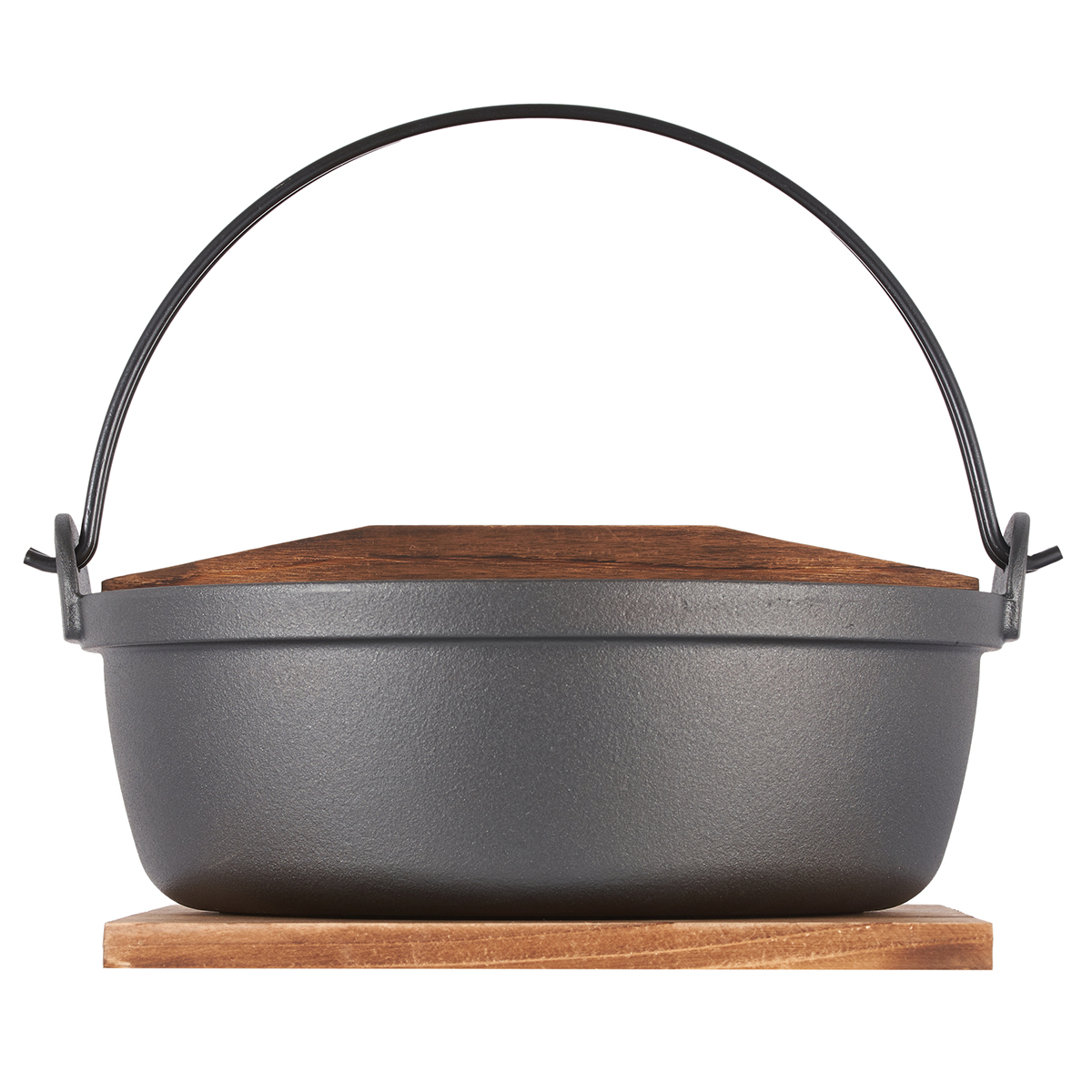 Чугунная кастрюля Gipfel Asia 52540. Размер 28х9 см. Объем 3 л. В комплекте крышка и подставка из кедрового дерева.