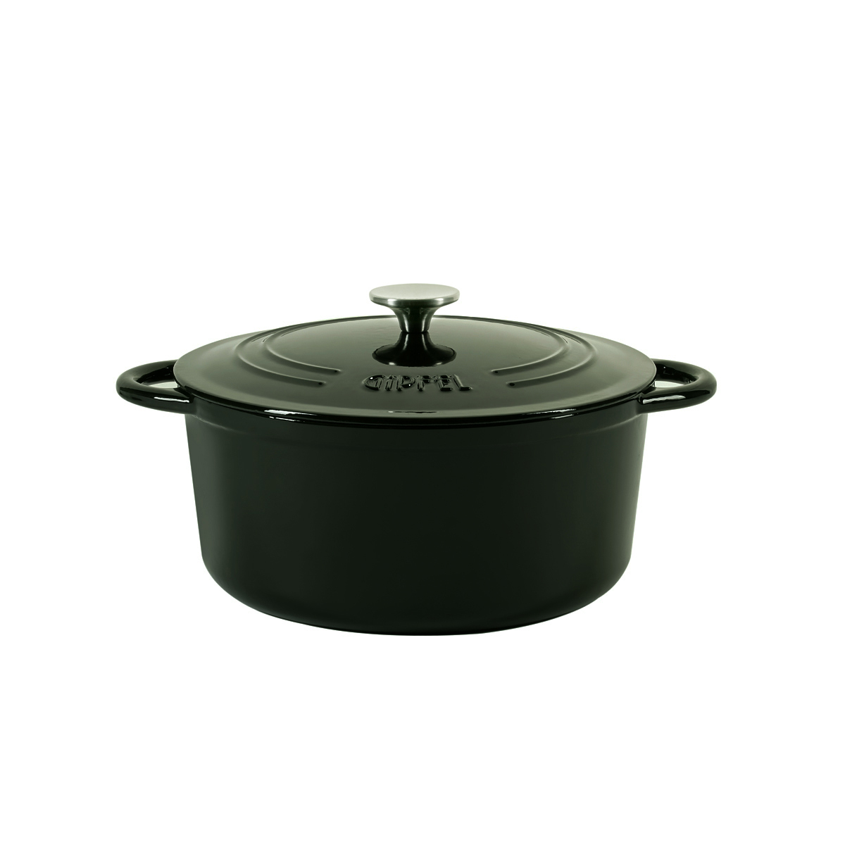 Кастрюля MAJOLICA 2281 GIPFEL диаметром 25,5см. Высота кастрюли 12см, объем 4,6л. Диаметр дна кастрюли 20см. Кастрюля сделана из чугуна с эмалированным покрытием. Крышка также чугунная с эмалированным покрытием и металлической ручкой. Снаружи кастрюля темно-зеленого цвета, изнутри - бежевого. Кастрюлю можно использовать в духовке. Температура использования – 260°С. Кастрюлю нельзя мыть в посудомоечной машине и ставить в свч-печь.