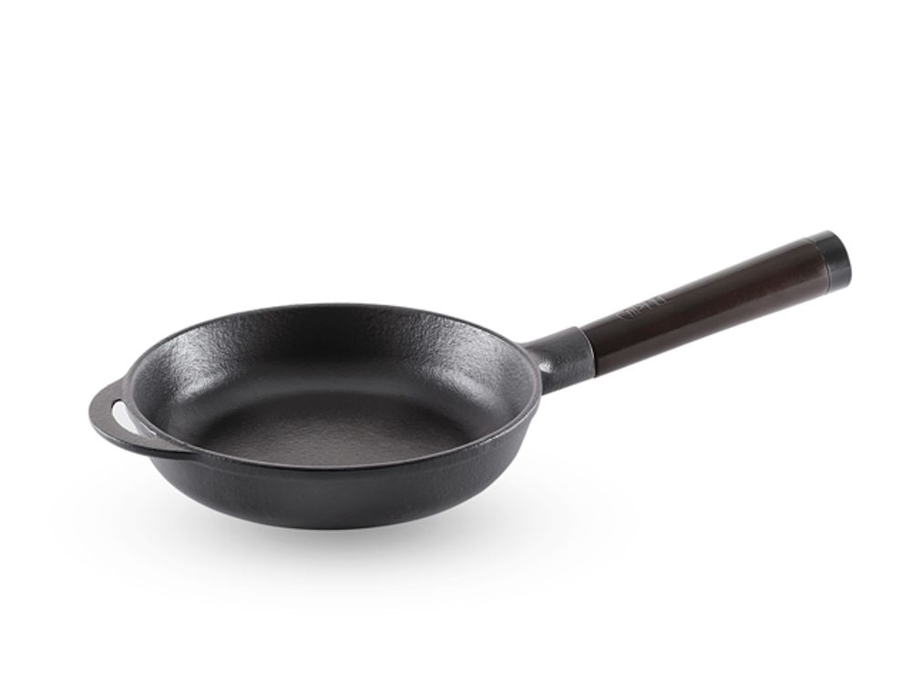 Вся серия сковород Gipfel Amanta изготовлена из чугуна, экологически чистого материала, на который нанесено эмалированное покрытие. Толщина корпуса сковороды составляет 4 мм, ее диаметр 24 см. Ручка посуды выполнена из дерева, модель подходит для готовки на индукционных плитах.