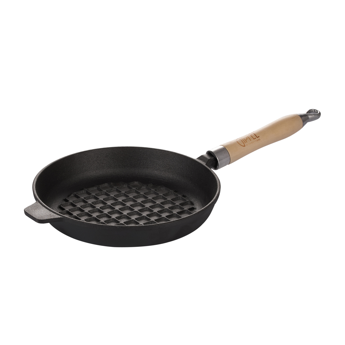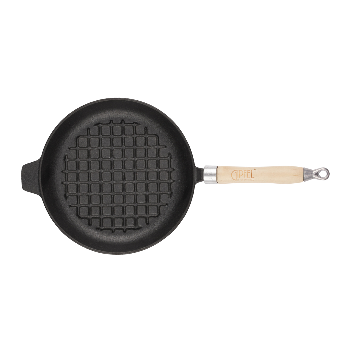 Cковорода Gipfel Diletto 2748 23x4 см с рифленым дном и с деревянной ручкой. Материал: чугун.