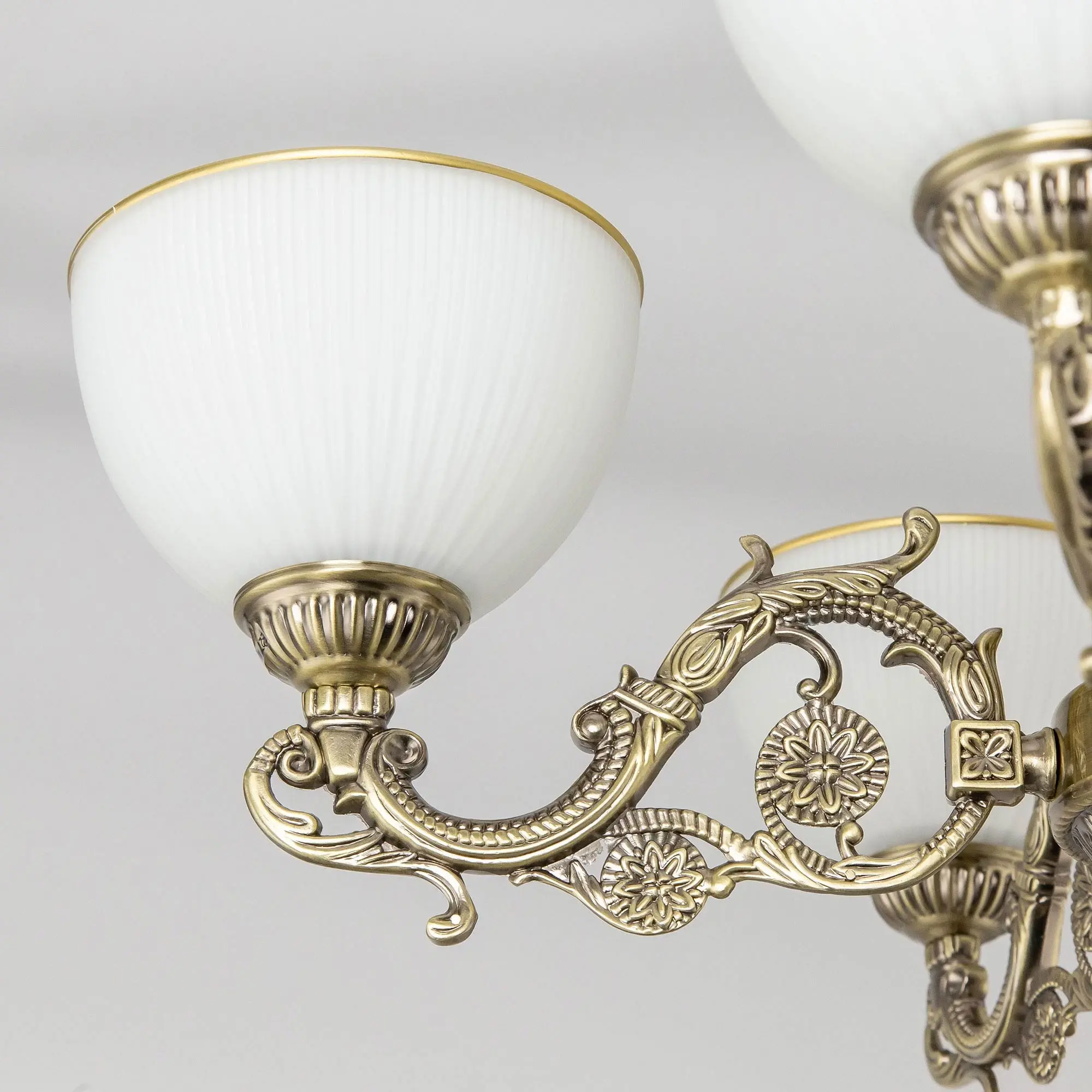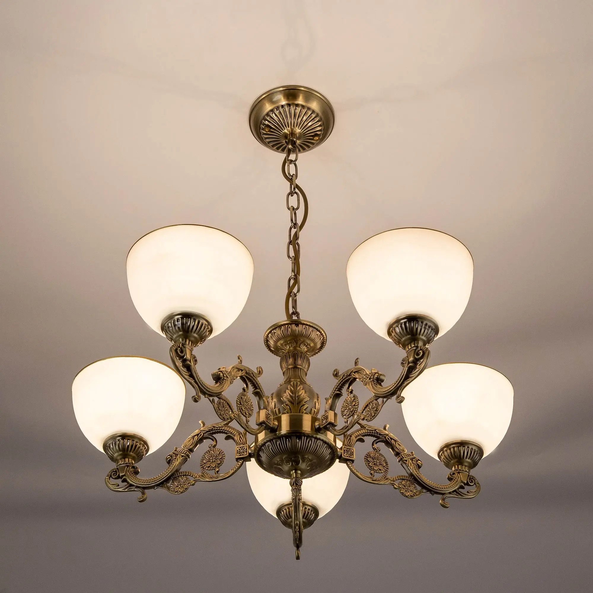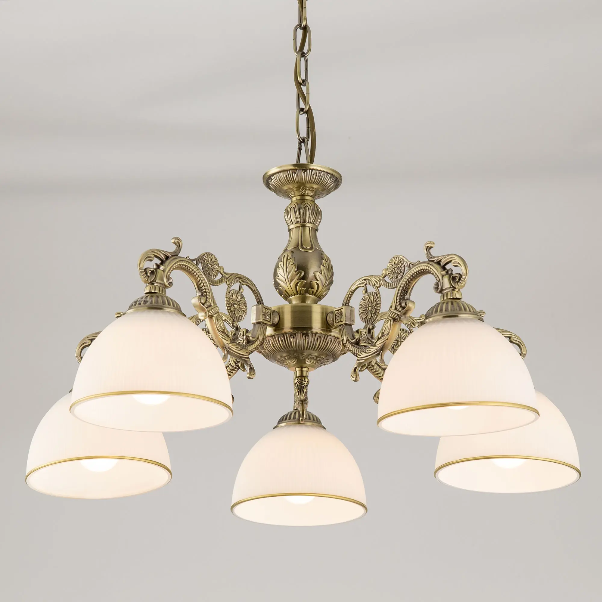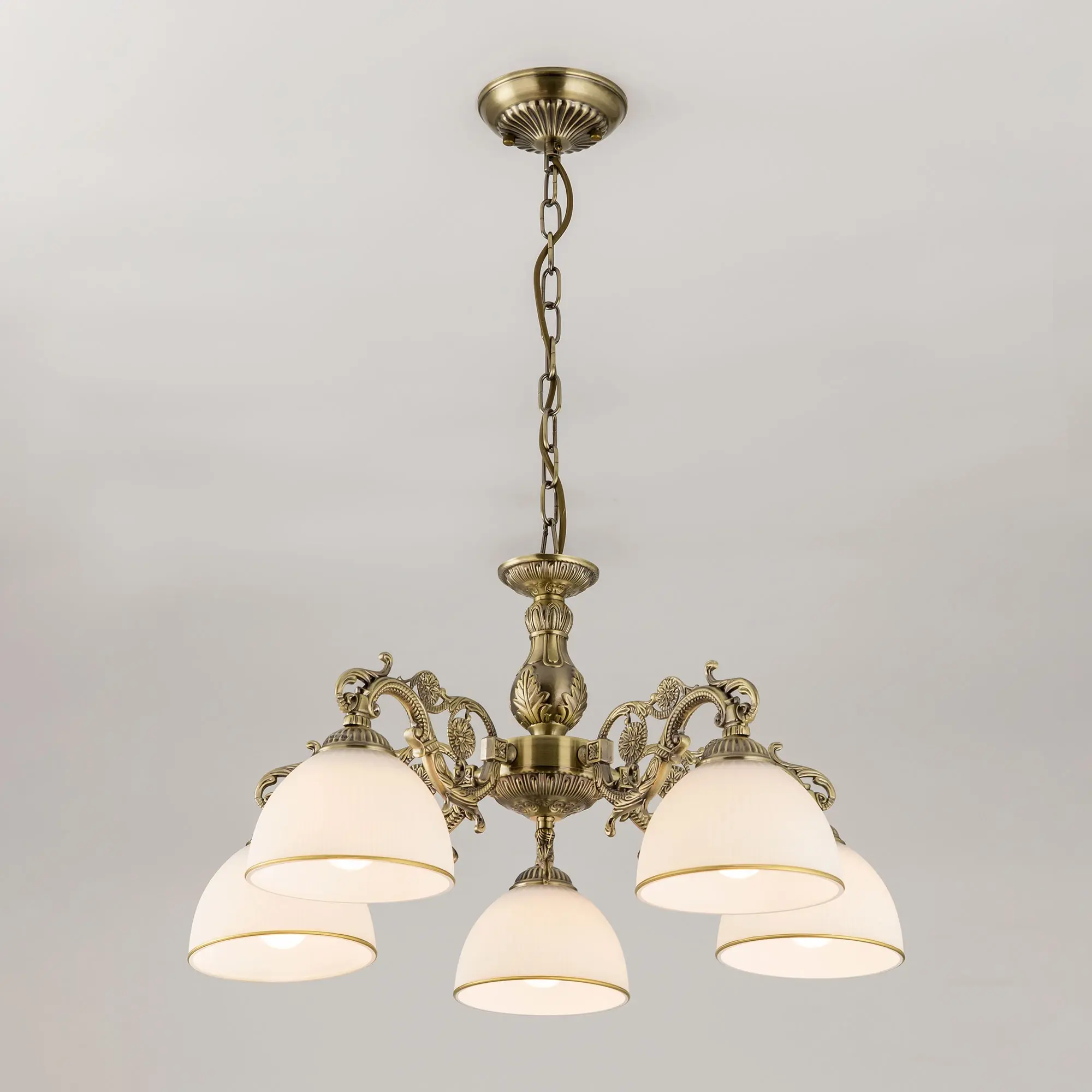 Люстра подвесная Ситилюкс CL405253 пятирожковая, выполнена в классическом стиле. Корпус модели металлический, с литыми рожками, цвет бронза. Плафоны стеклянные, матовые, рифленые с благородной золотистой окантовкой. Люстра поставляется в виде комплекта для самостоятельной сборки, с подробной инструкцией. Из данного комплекта, можно “сделать” подвесную люстру с плафонами, направленными вверх, дающую мягкий отраженный свет или более яркий вариант с плафонами вниз. Такой вариант подойдет для высоких потолков. При этом высоту люстры в 75 см можно уменьшить, сократив количество звеньев цепи с помощью удобного карабина. Если в помещении низкие потолки, люстру можно собрать вообще без элементов цепи, как потолочную, высотою всего 30 см. Более того, на стадии сборки Вы можете скоммутировать люстру для работы, как с одноклавишным, так и с двухклавишным выключателем. В модели используются лампы с цоколем Е27 и максимальной мощностью для ламп накаливания 75Вт. Суммарная мощность 375 Вт. Светодиодные лампы можно использовать большей яркости.