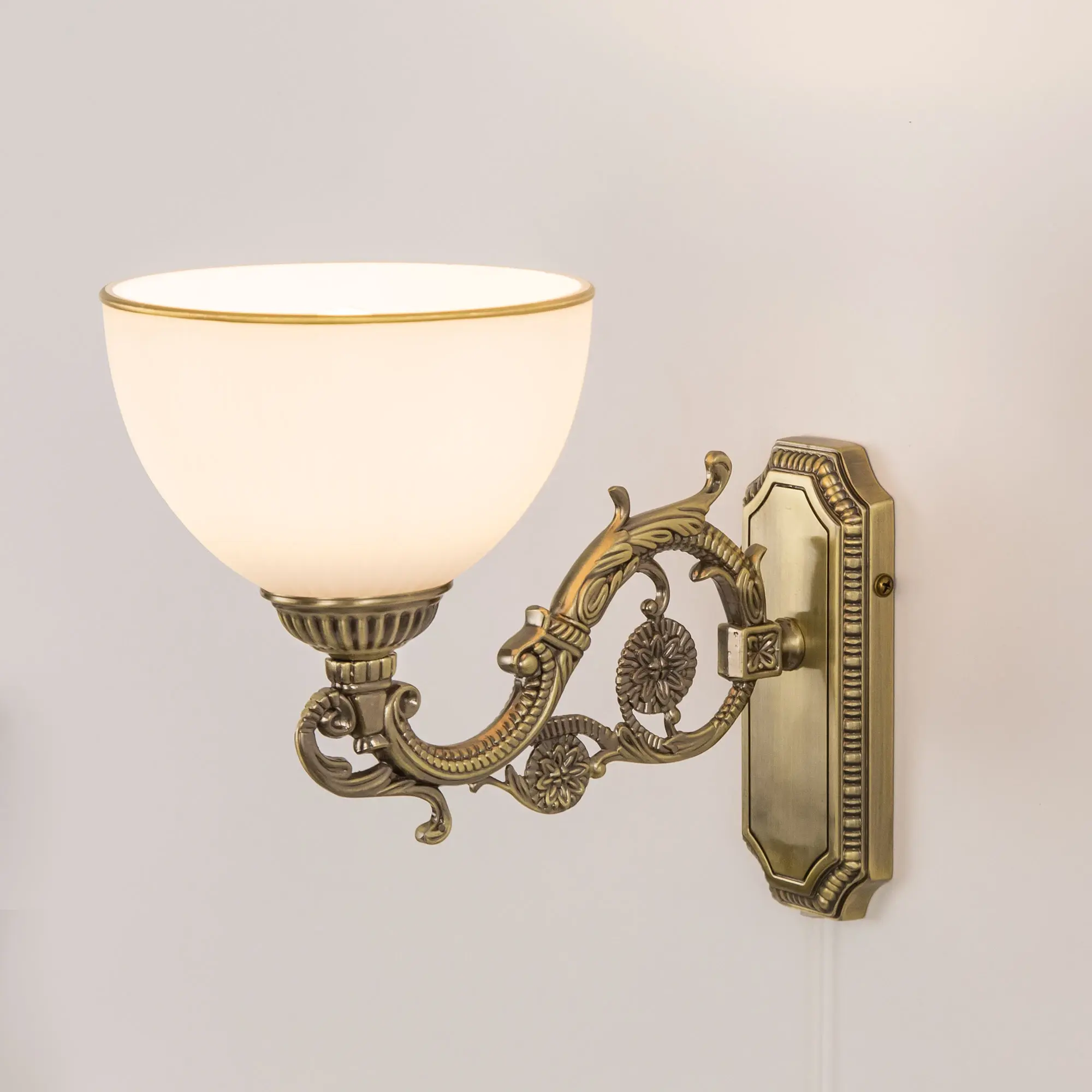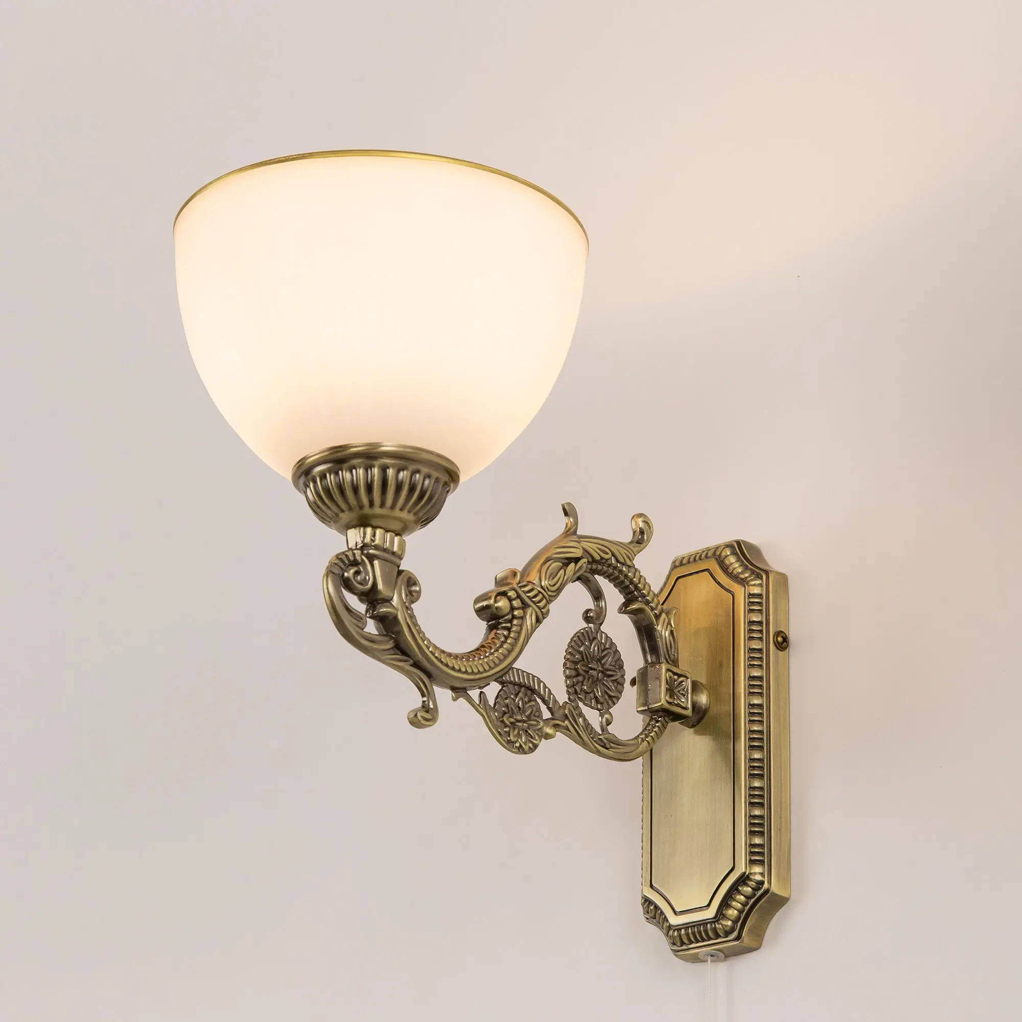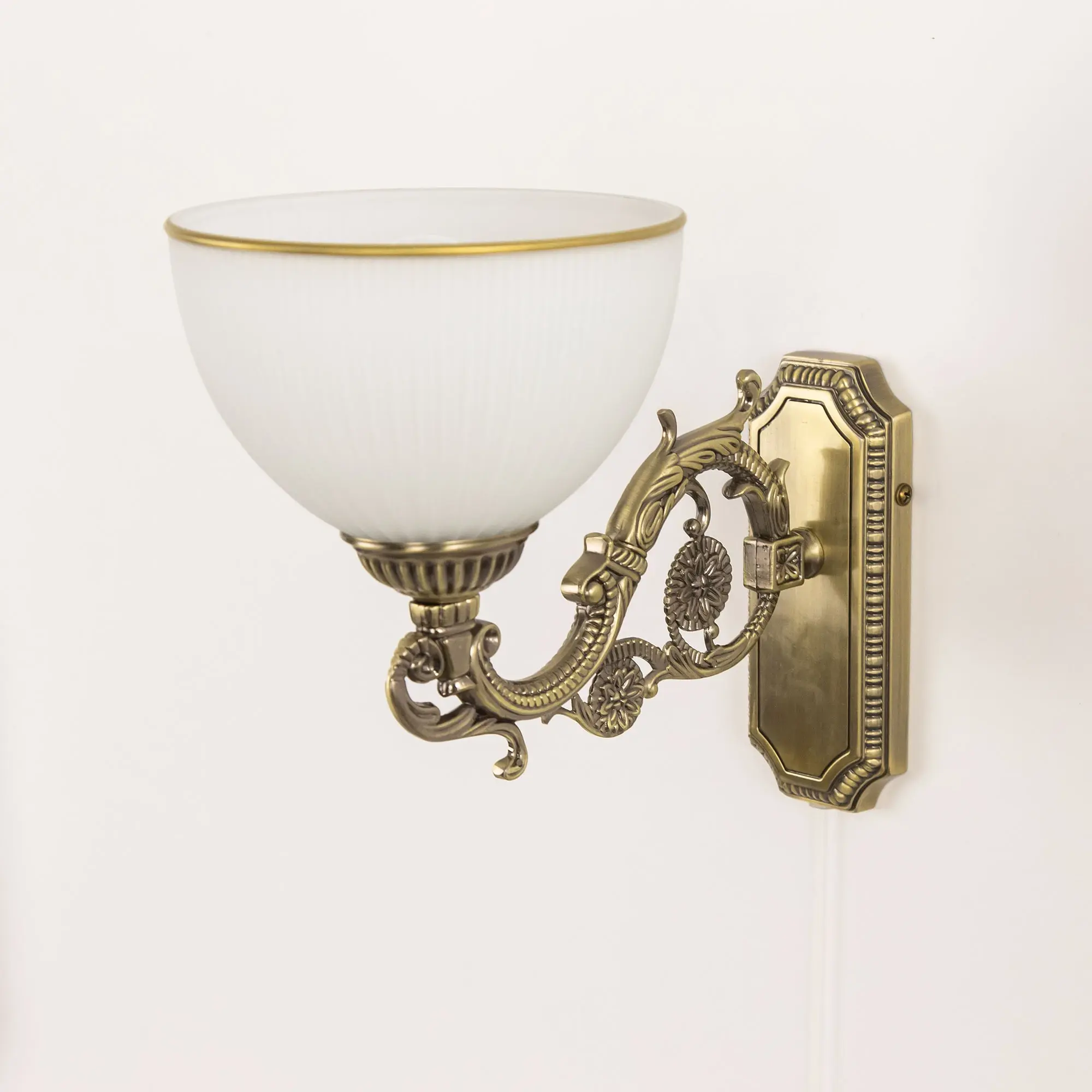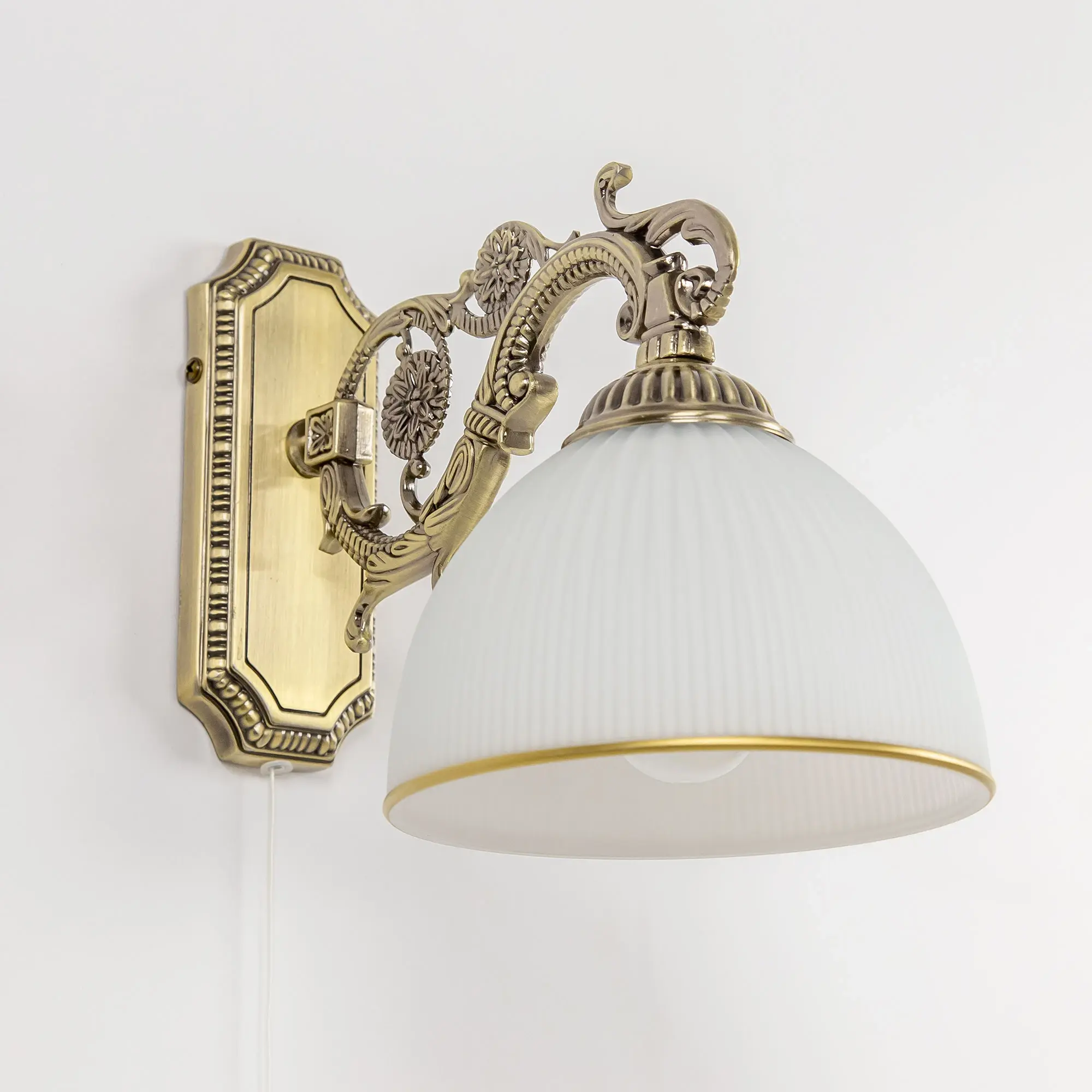 Бра однорожковое Ситилюкс CL405413 с выключателем, выполнено в классическом стиле. Корпус модели металлический с литым рожком и основанием прямоугольной формы. Плафон стеклянный, матовый, рифленый с благородной золотистой окантовкой. Светильник можно устанавливать на стене плафоном вверх или вниз, для общего освещения или для чтения. Настенное бра рассчитано на подключение к скрытой проводке. Если во время ремонта Вы не вывели проводку под бра, модель можно подключить с помощью провода в розетку. В бра используется лампа с цоколем Е27 и максимальной мощностью для ламп накаливания 75Вт. Светодиодные лампы можно использовать большей яркости.