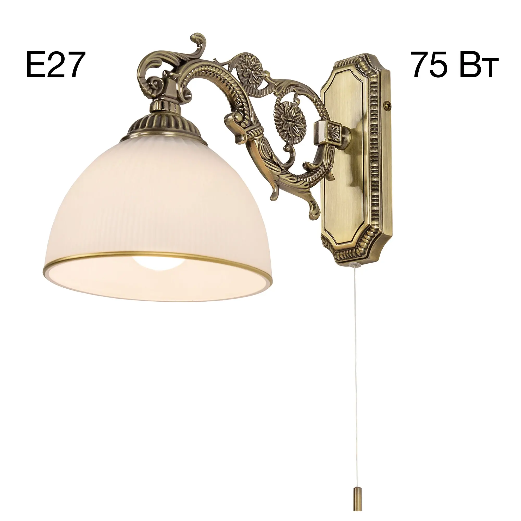 Бра однорожковое Ситилюкс CL405413 с выключателем, выполнено в классическом стиле. Корпус модели металлический с литым рожком и основанием прямоугольной формы. Плафон стеклянный, матовый, рифленый с благородной золотистой окантовкой. Светильник можно устанавливать на стене плафоном вверх или вниз, для общего освещения или для чтения. Настенное бра рассчитано на подключение к скрытой проводке. Если во время ремонта Вы не вывели проводку под бра, модель можно подключить с помощью провода в розетку. В бра используется лампа с цоколем Е27 и максимальной мощностью для ламп накаливания 75Вт. Светодиодные лампы можно использовать большей яркости.,