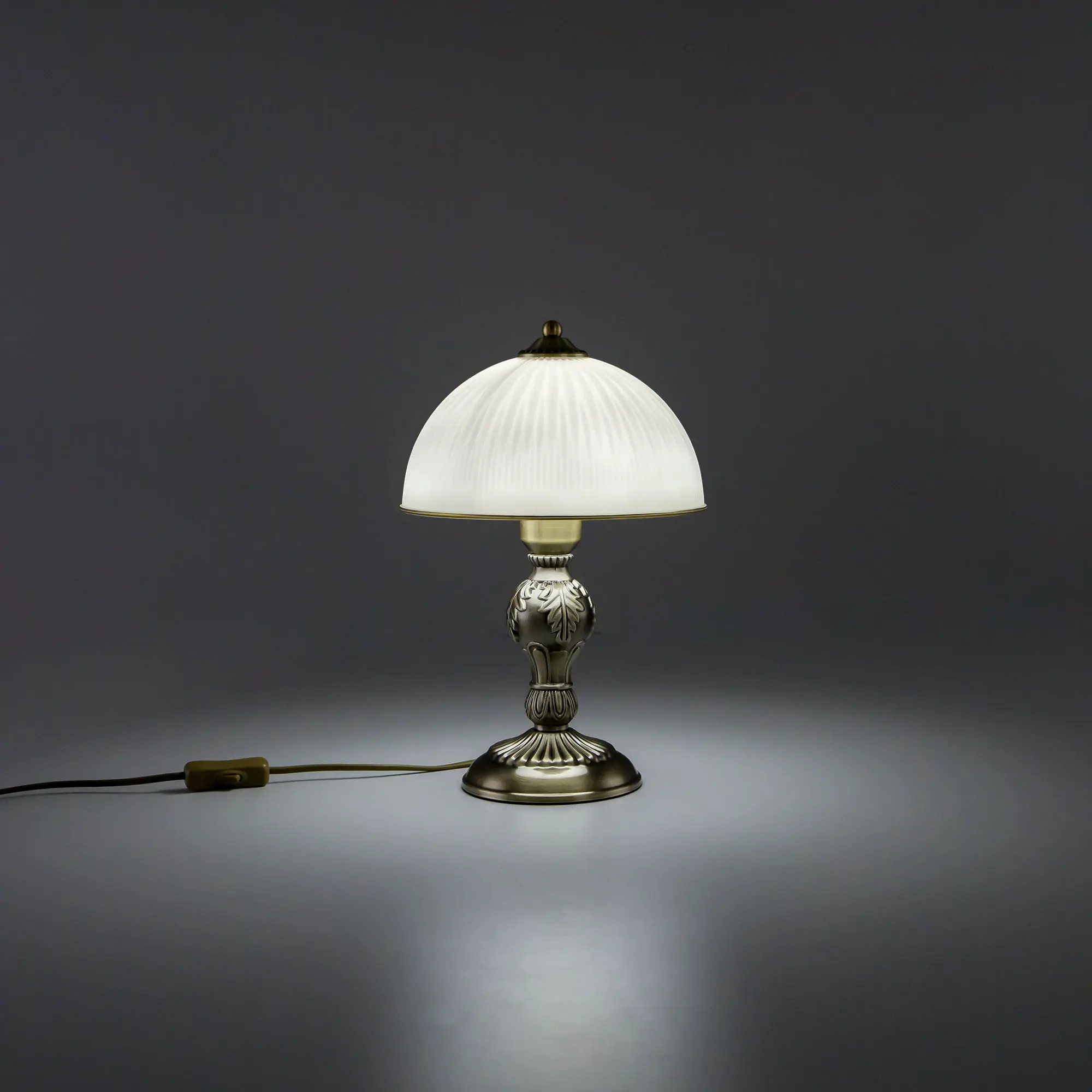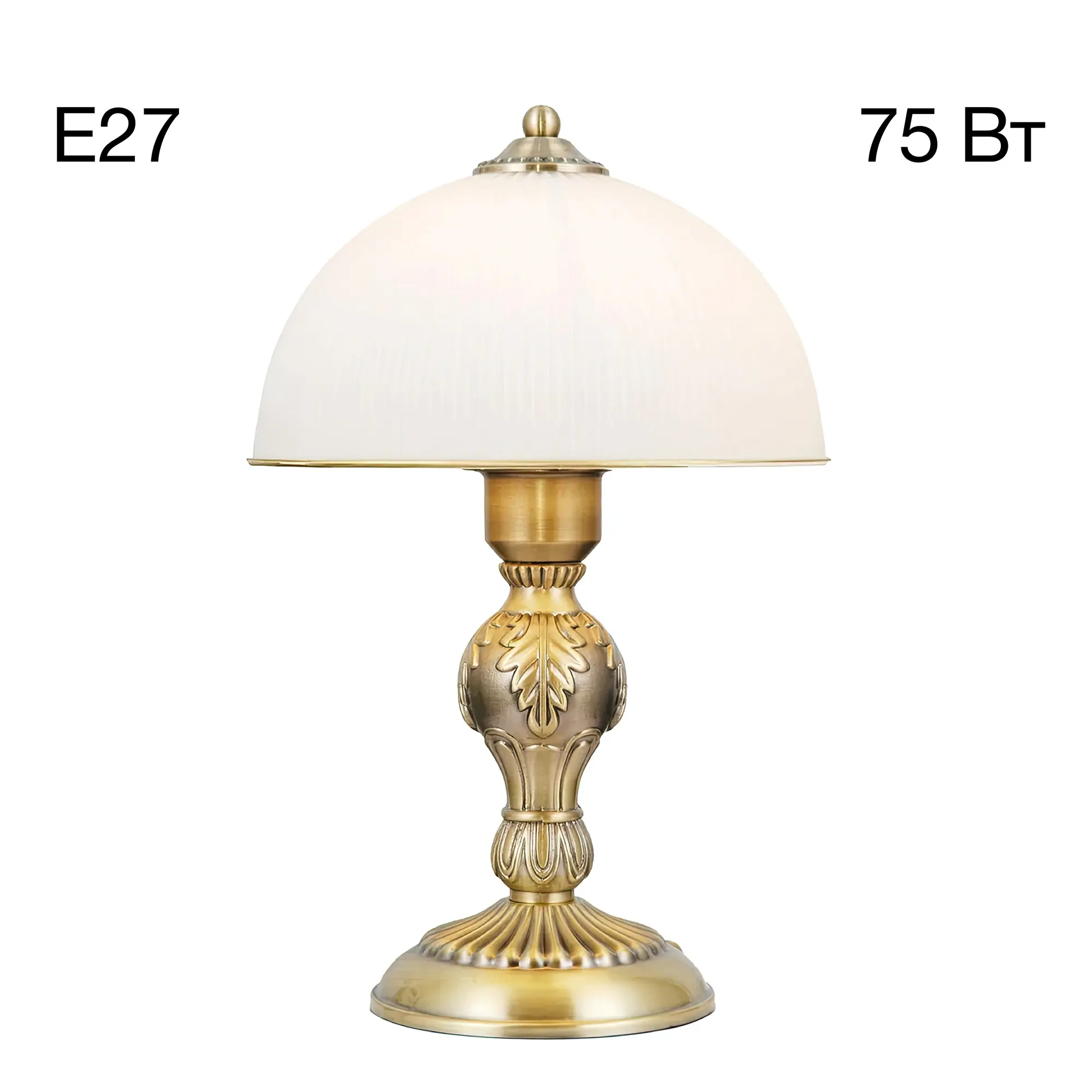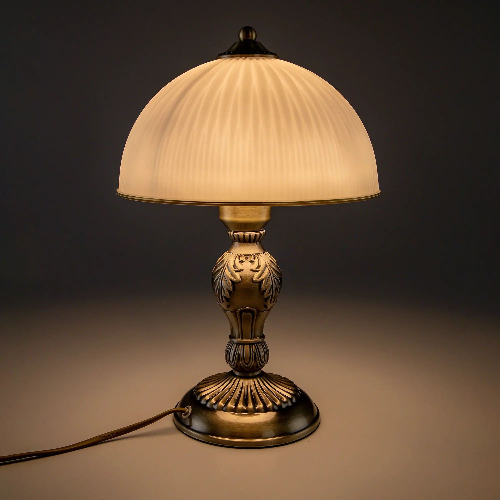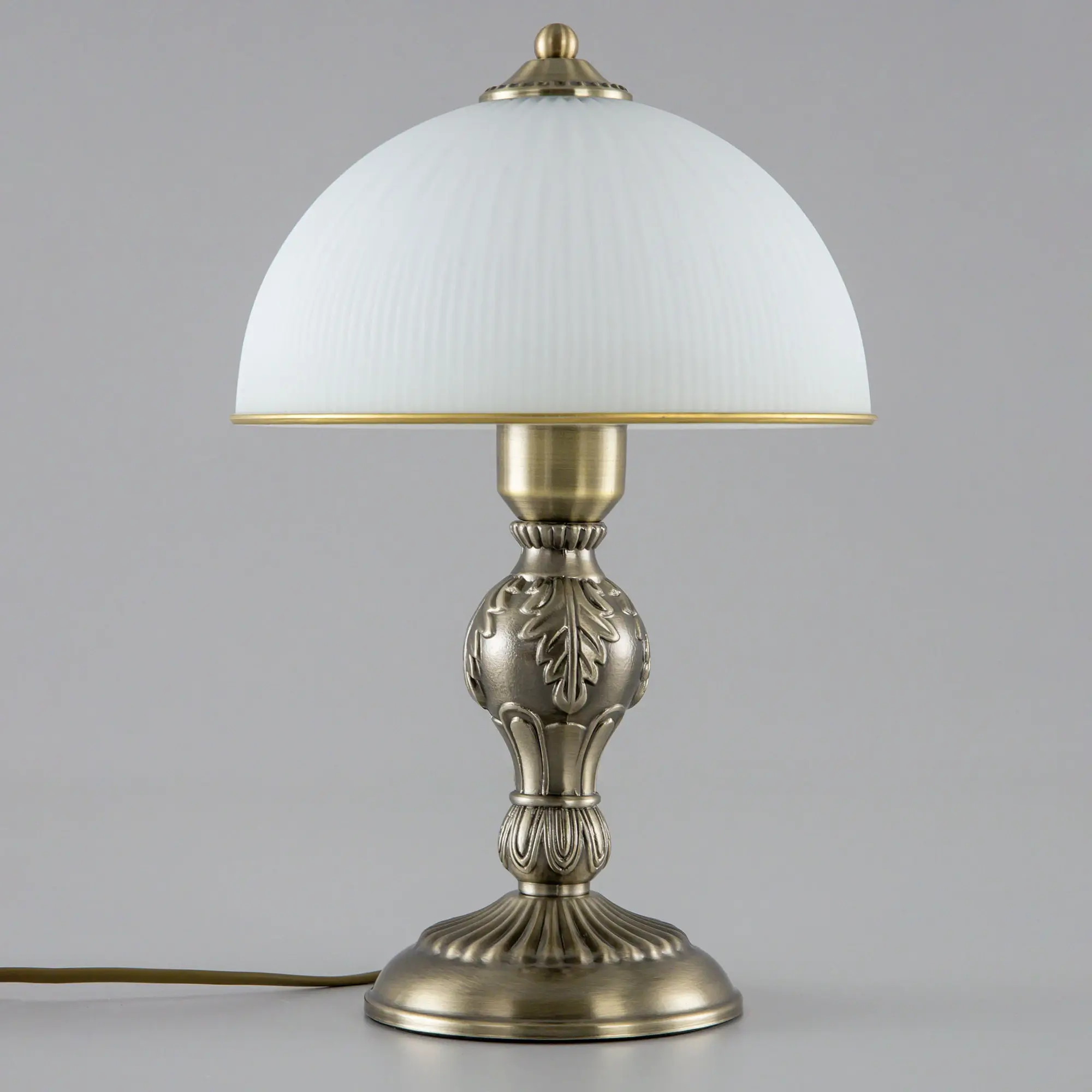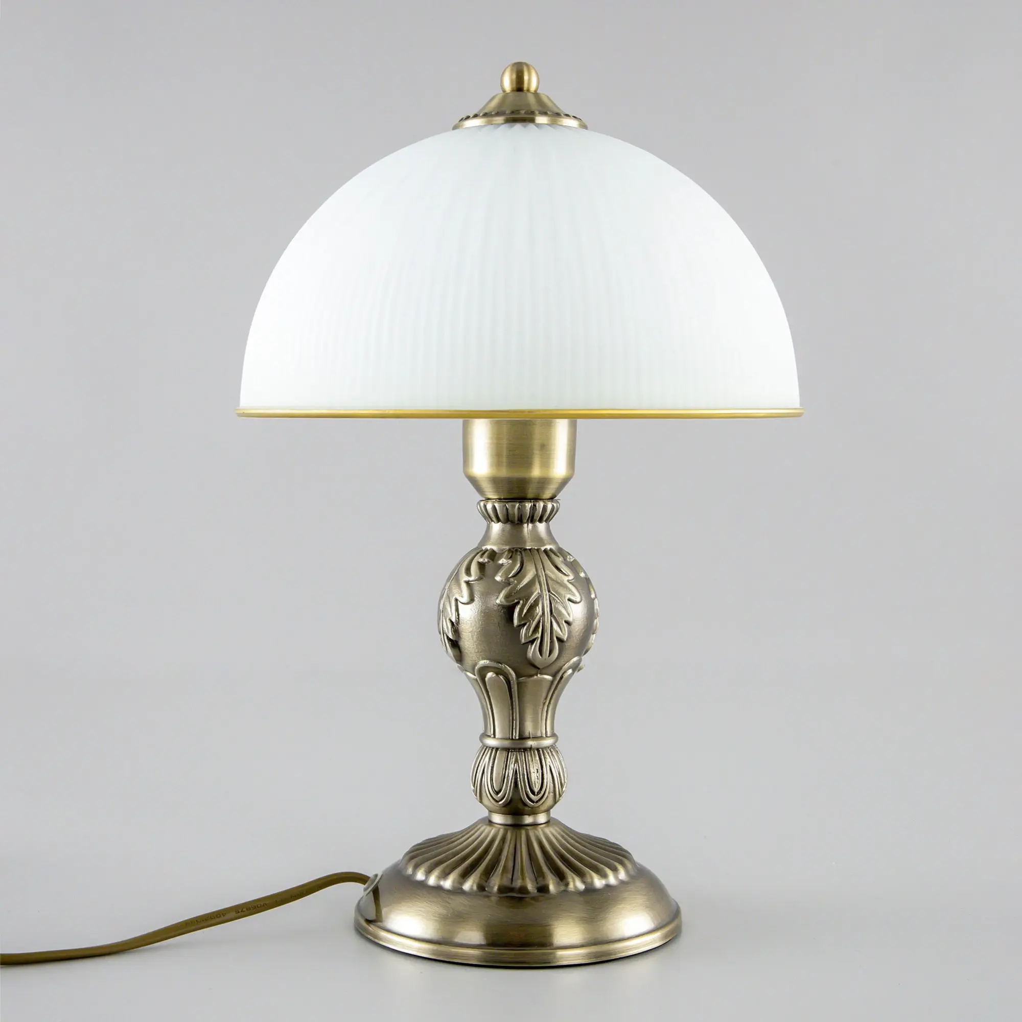 Настольная лампа Citilux Адриана CL405823 в классическом стиле. Корпус светильника металлический, бронзового цвета. Плафон стеклянный, матовый, рифленый с благородной золотистой окантовкой. Высота изделия 35см, диаметр 22см. В модели 1 лампа с цоколем Е27, максимальная мощность для ламп накаливания 75Вт. Светодиодные лампочки можно устанавливать более яркие. Длина сетевого провода 1,7метра. Выключатель находиться на проводе, на расстоянии 25см от основания.,