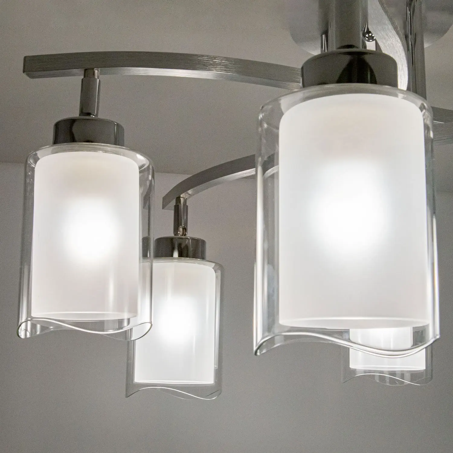 Потолочная люстра Citilux Аэлита CL169161 выполнена в современном стиле. Корпус светильника металлический с изогнутыми рожками, цвет алюминий с декоративными хромированными элементами. Плафоны двойные, состоят из двух отдельных частей. Внутренний плафон цилиндрической формы из полуматового стекла, внешний плафон из прозрачного стекла, в сечении квадратной формы с закруглёнными углами и волнистым краем. Плафоны на поворотных шарнирах, можно направить в любую сторону. В изделии используются лампы с цоколем Е27, максимальной мощности для ламп накаливания 75Вт (в комплект не входят, приобретаются отдельно). Шестирожковая люстра Citilux Аэлита CL169161 отлично подойдёт для освещения современных интерьеров в комнатах со стандартными и низкими потолками