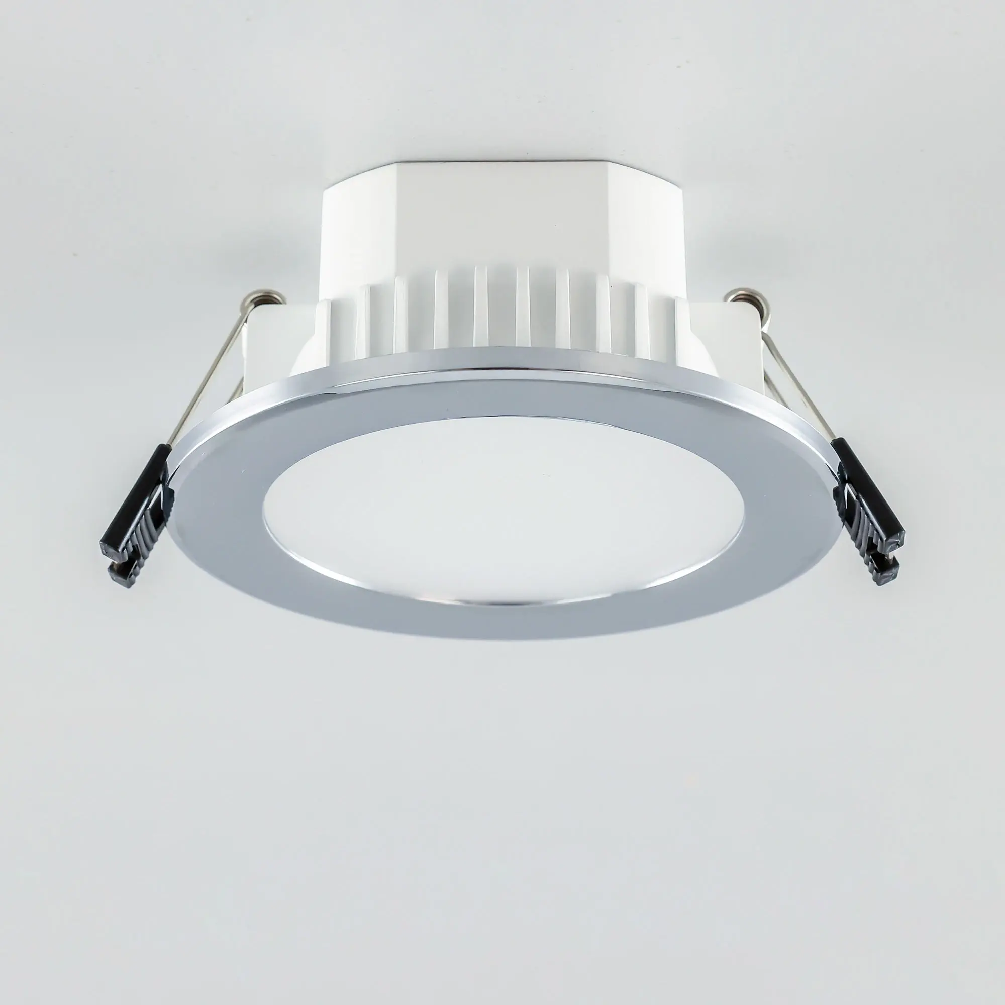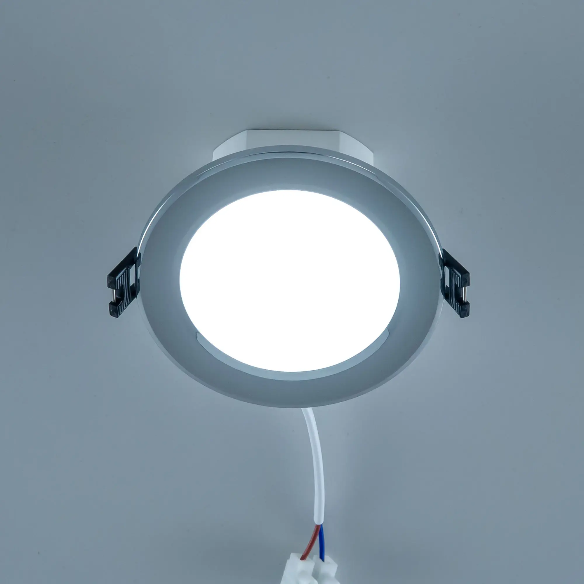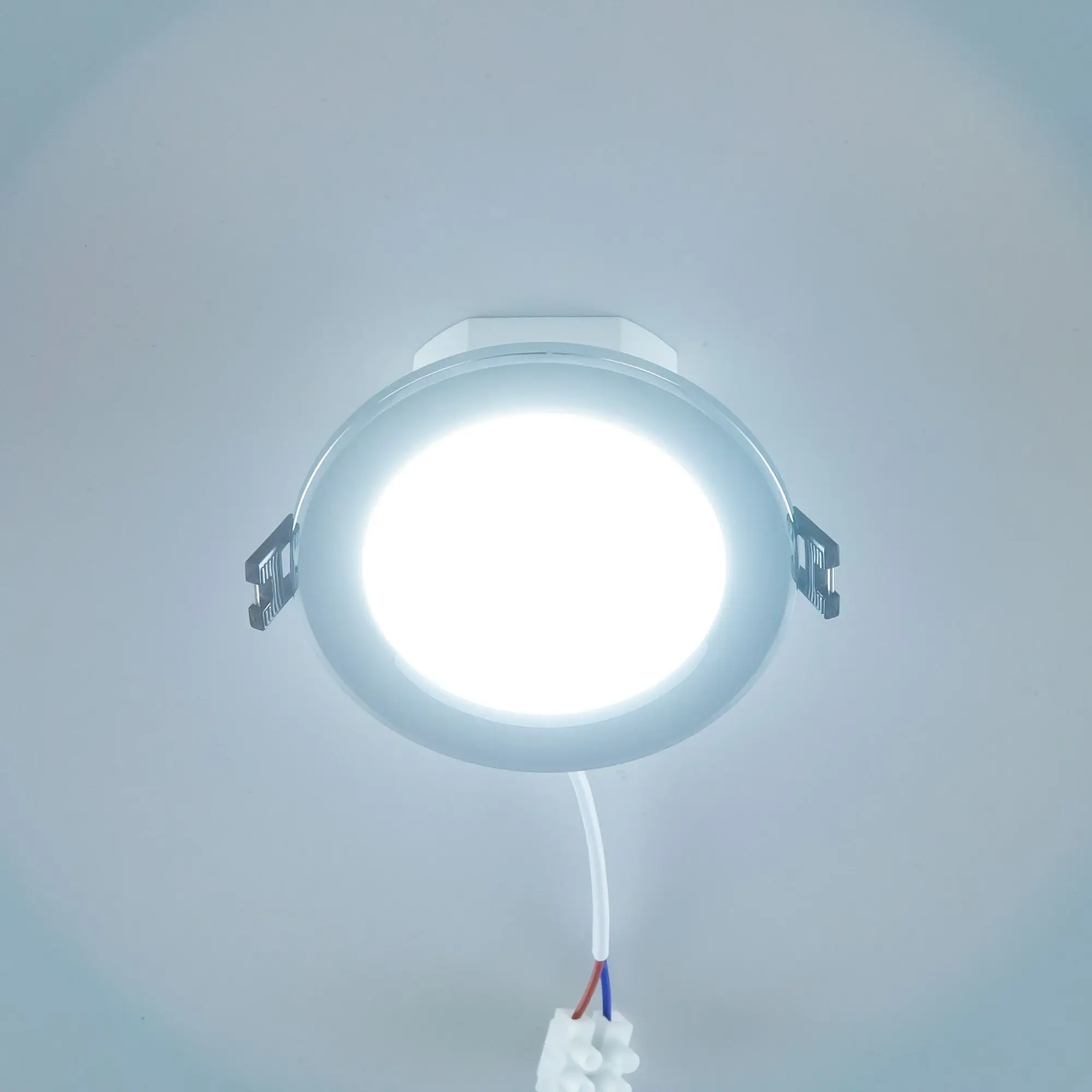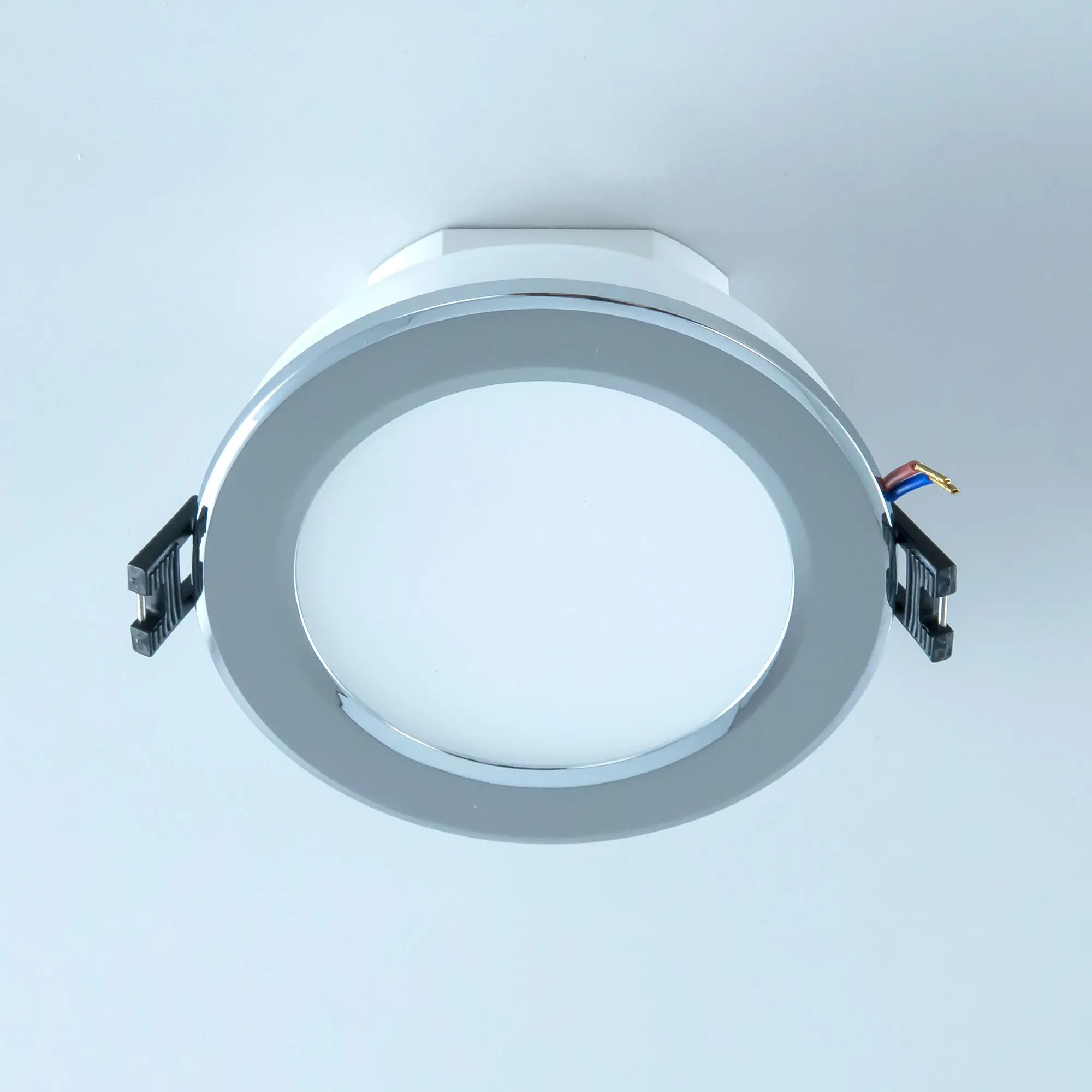 Влагозащищенный точечный светодиодный светильник Citilux Акви CLD008111V цвет хром. Корпус изготовлен из прочного полимера, рассеиватель из оптического полимера. Модель круглой формы, оснащена 3-х ступенчатым диммером 100-40-15%, управляется обычным настенным выключателем. Переключатель цветовой температуры (находится с тыльной стороны светильника) позволяет при монтаже установить режим свечения - тёплый, нейтральный или холодный свет 3000-4000-5500К. Мощность 7Вт, световой поток 600Лм, угол рассеивания 120°, класс защиты IP44. Свет безопасный для глаз, без мерцаний и пульсаций, во всех режимах работы. Модель подходит для всех типов навесных и натяжных потолков, прекрасный вариант для ванных комнат и санузлов,
