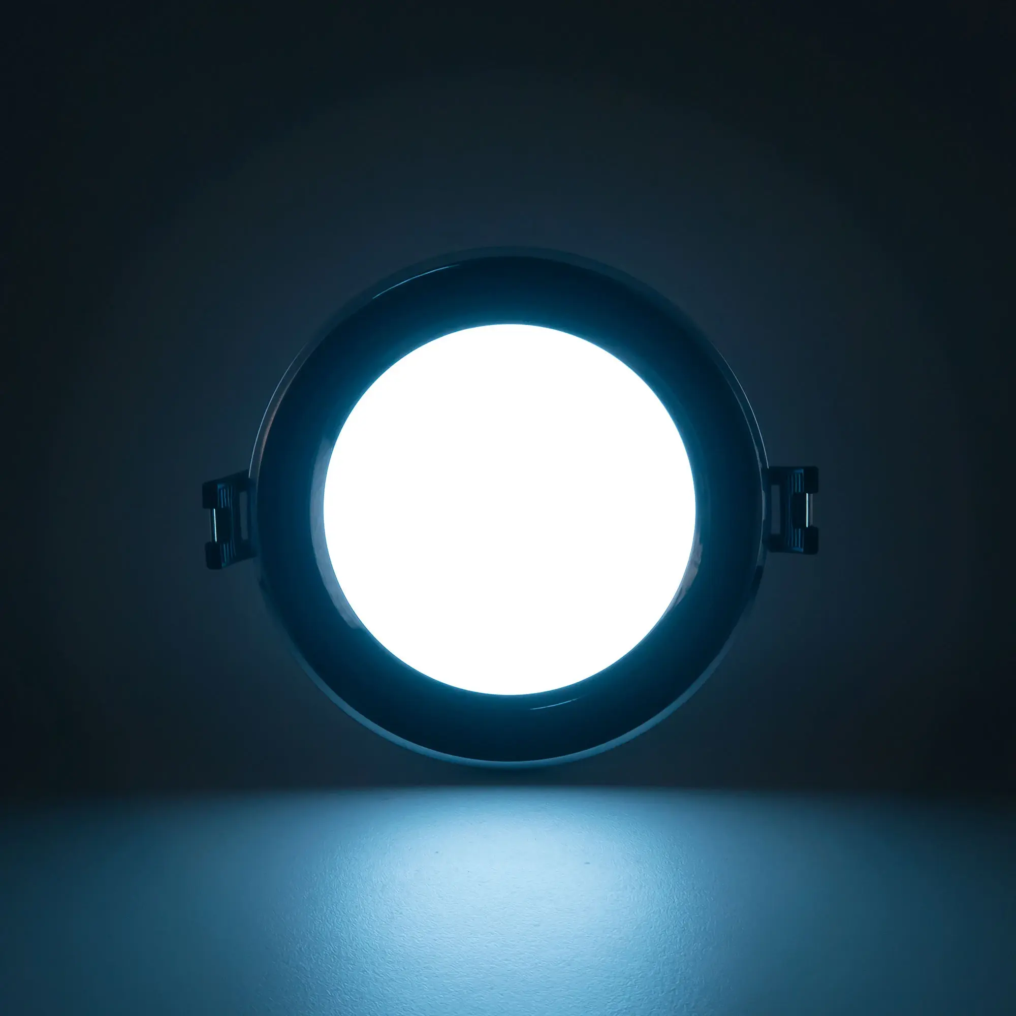 Мощность изделия 7Вт, световой поток 600Лм, угол рассеивания 120°, класс защиты IP44. Переключатель цветовой температуры (находится с тыльной стороны светильника) позволяет при монтаже установить режим свечения - тёплый, нейтральный или холодный свет 3000-4000-5500К. Модель оснащена ступенчатым диммером, доступно три уровня яркости - 100-40-15%, управление - обычным настенным выключателем. Свет безопасный для глаз, без мерцания и пульсаций, во всех режимах работы.